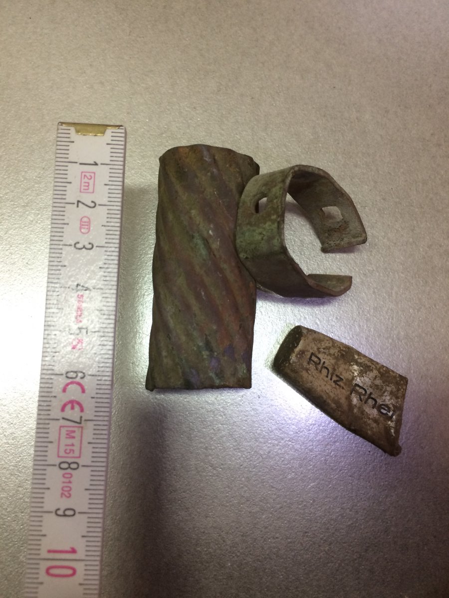 Первое фото, алюминиевая сплюснутая колба(цилиндр) с надписью "RHIZ RHIZ" - немецкое слабительное из корневищ ревня в таблетках, тоже первое фото, кольцо с двумя отверстиями, из какого металла, и что за рифлёный(волнисты) прямоугольник?