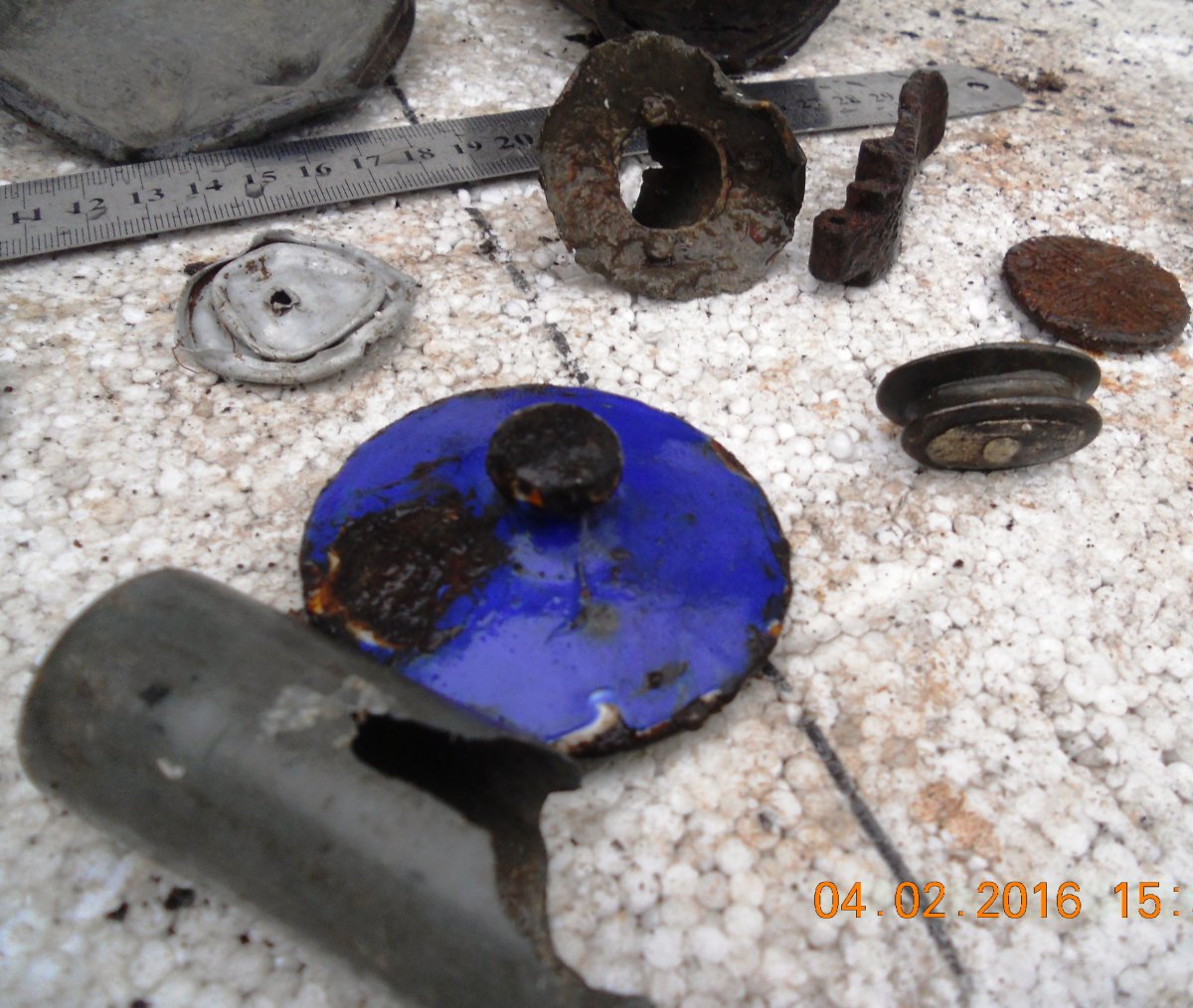 Здравствуйте! Пишу хлам дабы не писали -Это хлам,зачем выставляешь,так как такое было уже.Далеко в поле у яра был хуторок на две хатки,да сам я его и выбил,сразу монетки попадались и серебряные,и медные,и колечко серебряное пожёваное,а так как в ярку все в немецких блинах и позициях,подсобирался такой крамец,понимаю выкинуть...но для начала узнать что было.Приблуда под номером 1 как детонатор розворочен. Дет 3 очень тяжелая,внутри медный поясок.Дет №9 внутри пыжь картонный.Приблуда №5 с буковкой ,Н,в кружке.К чему крышка №10.Ну и по остальным кто что знает.Качество фото не ахти,поэтому сделал много.С ув!