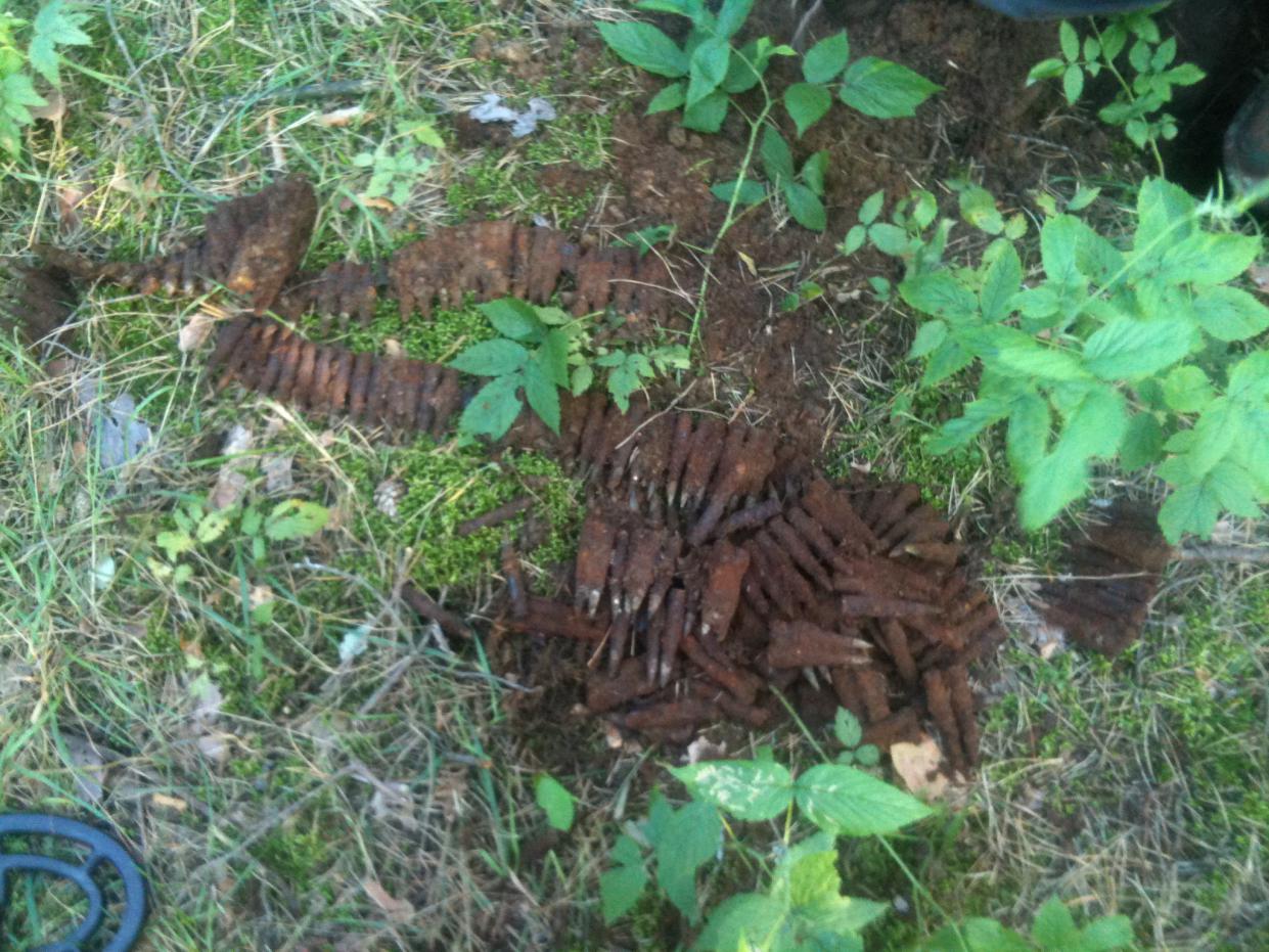 Дополню тему катались по 44. Удивило большое количество лент в ячейках) Попался тухлый нем подсумак с мосинскими маслятами. Нашли технику без прибора откапывали 2 часа))))) Также местная достопремечательность.
