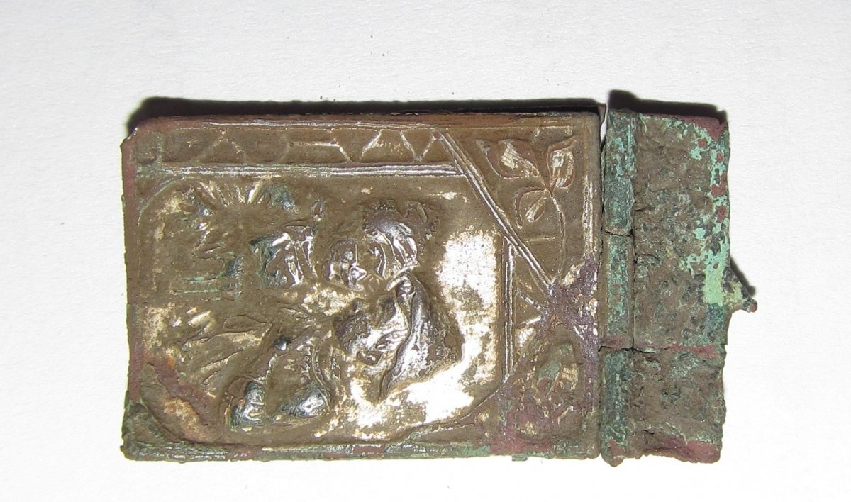 3. Какая-то ладанка, открывалась. Что было внутри? Вроде изображены не святые.. Я так понял чел обнимает за плечо кого-то (или подругу или друга) с розой в руке...