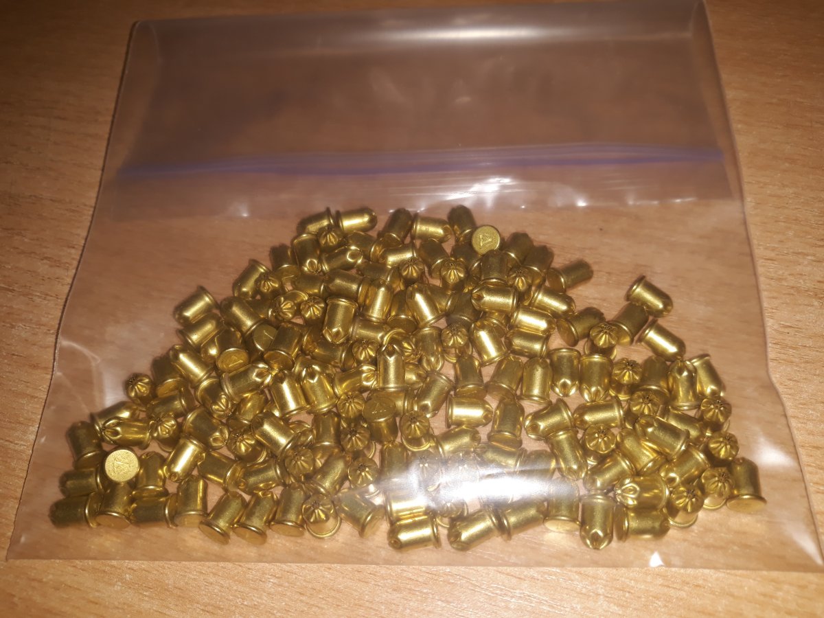Холостые 5,6 мм в латунной гильзе.