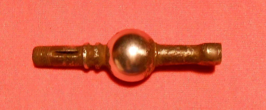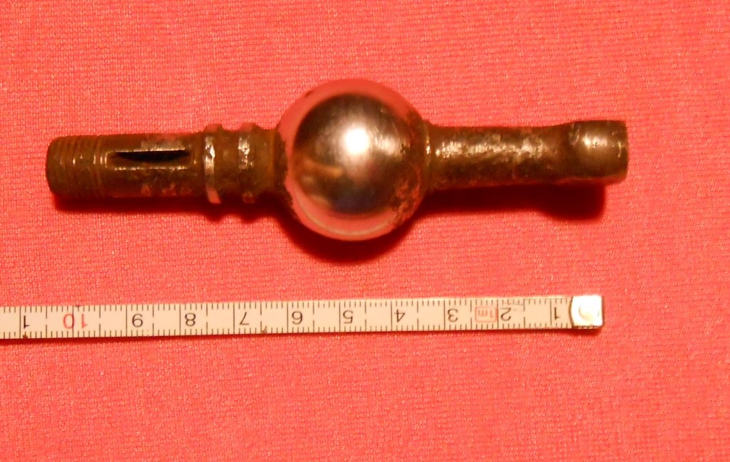 Схоже на шаровий шарнір підвіски...Але щоб подвійний?..Закінченням схожий на Газоновский важіль перемикання передач...Але ні те ні інше не має отвору під шпонку.Попутні знахідки які?