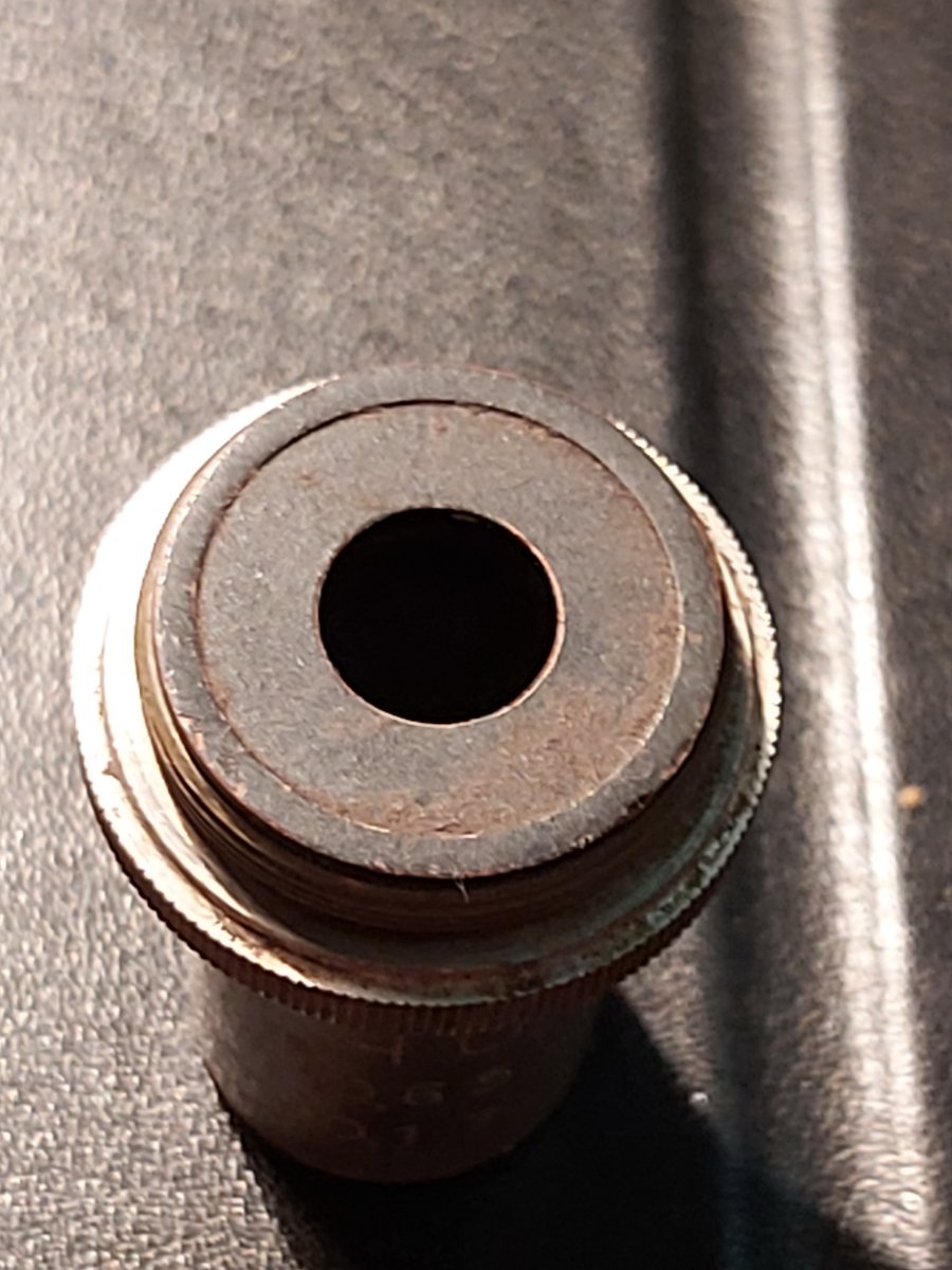 ...его раздавИли и выбросили... фронтальной линза отсутствует и ее обойма загнута вовнутрь. с 40-ми это случАлось (хотя, как прАвило, дАвится покровное/предметное стекло)