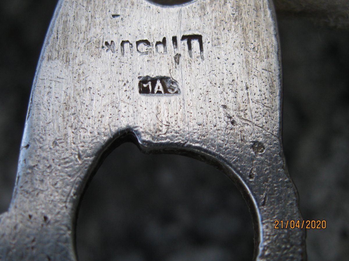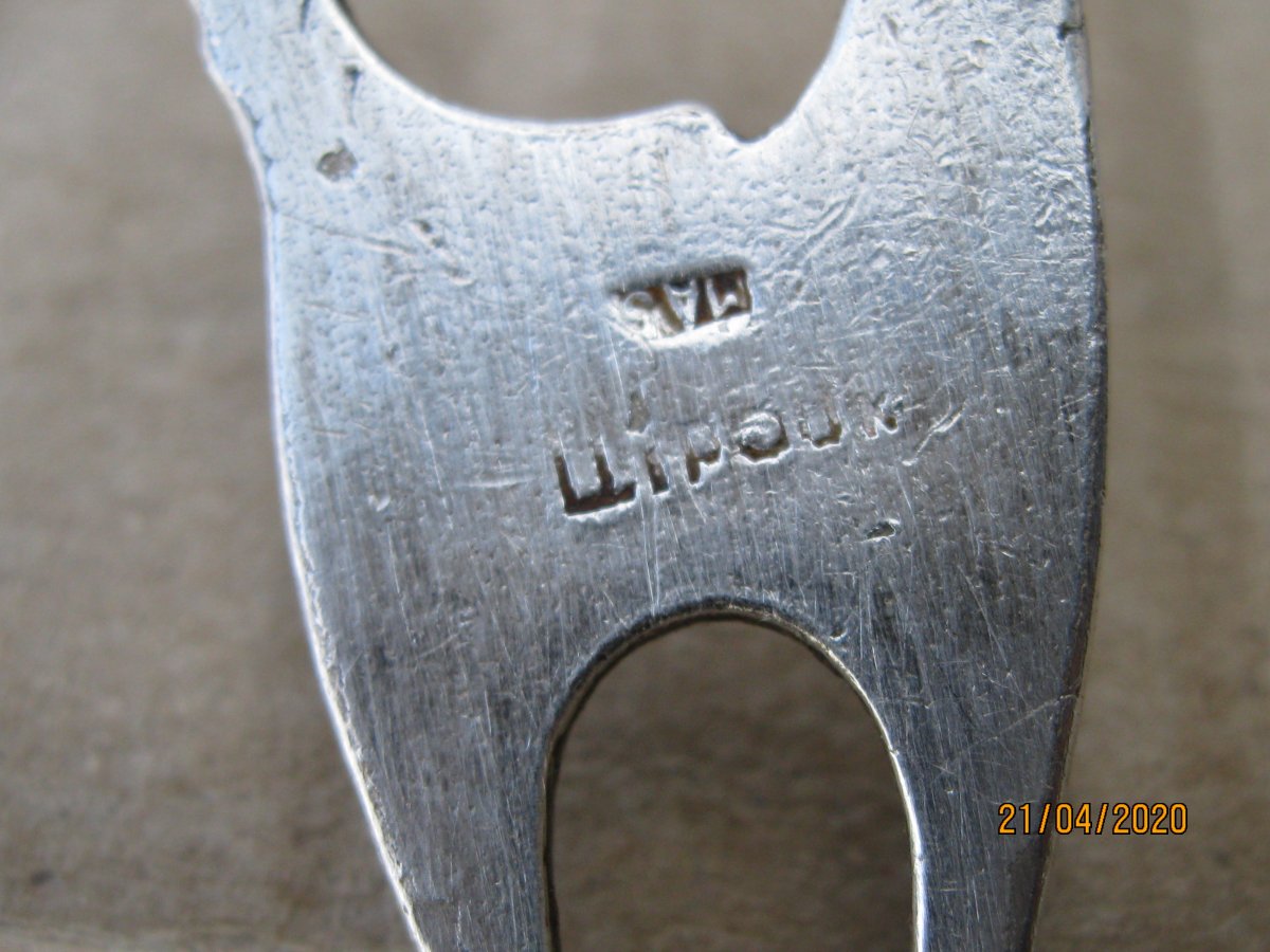 Доброго дня. Вот такая чайная ложечка. Ничего не могу понять по клейму. Нету таких, или я не туда смотрю.