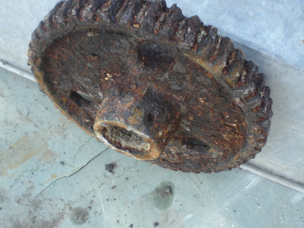 Вот еще добавлю. Находки все те же, хуторские. Уже повыставлял везде, где можно, и в техике, и " летчикам подбросил".Пока никто не высказался. Интересен насос, я вижу- самолет. Номер пробить не удалось, а лейба, на жаль, не сохранилась. И вот такая вот крышечка. я бы предположил что бачка, но смущают рюшечки.
