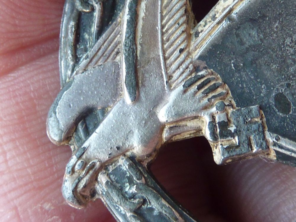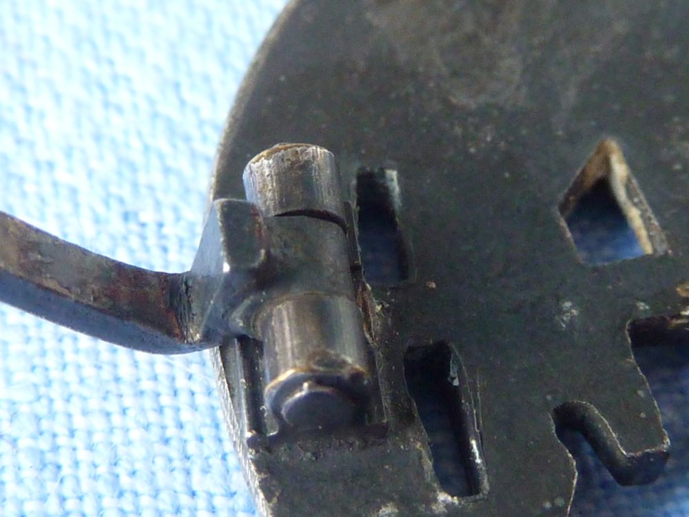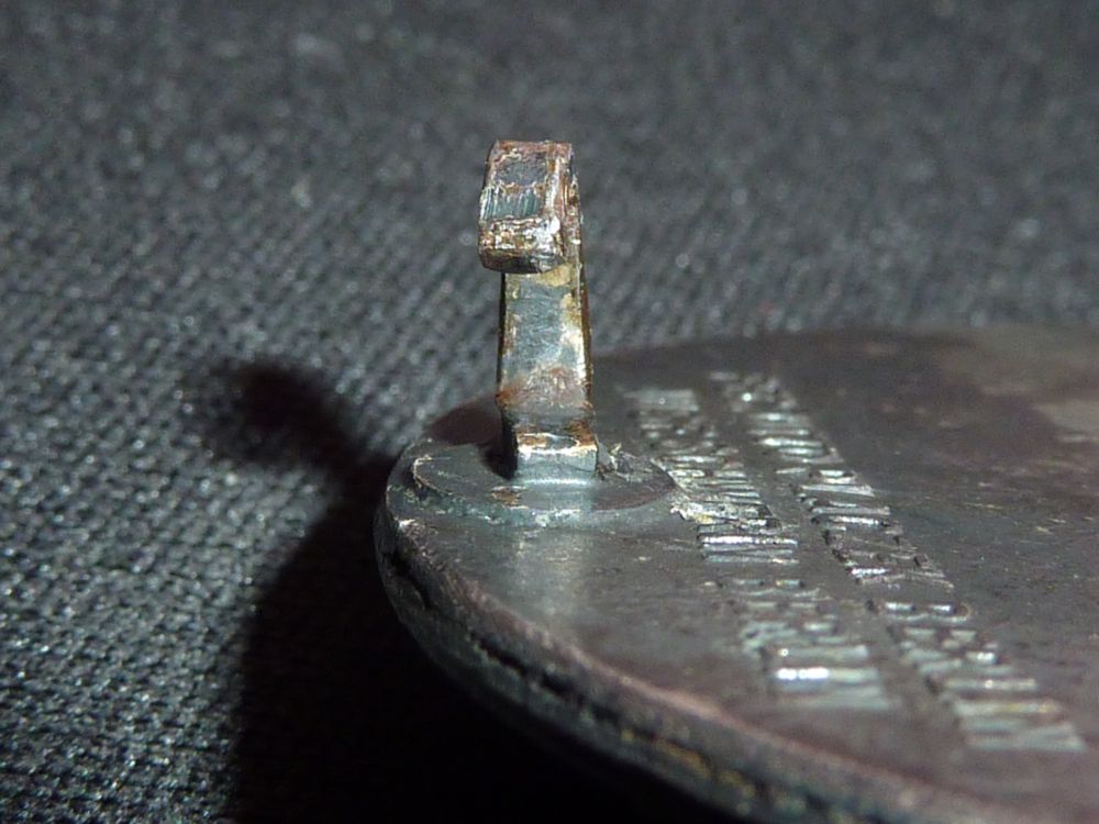 За прорыв Блокады, Шверин. цена 275 евро + почта При покупке знака продавец мне сказал, что на улавливающем крюке была едва заметная трещина, он понёс знак мастеру что бы тот ему трещину запаял, но мастер предложил более современный способ ремонта и укрепил трещину ювелирным клеем для крепления ювелирных камней, знак у меня более года, я внимательно его рассматривал, но трещину не видно, фото крюка прилагаю со всех сторон