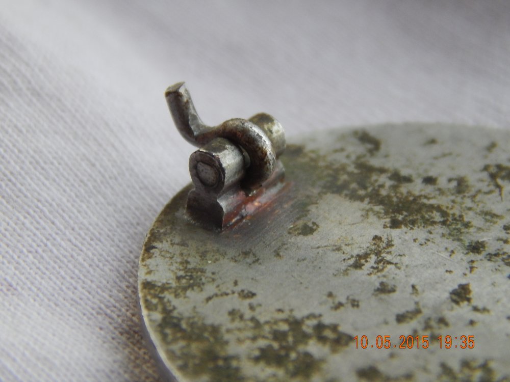 1. Знак с необычной шагренью (как у Ассмана), в бодром сохране. Отломан зацеп.