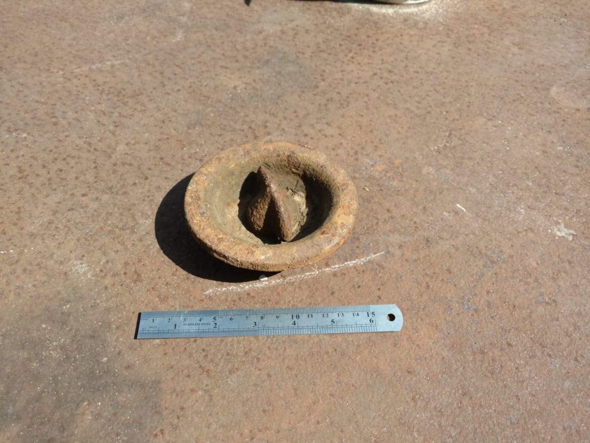 Вітаю. Підкажіть, що за деталь? Залишки сірої фарби. Крутілка з різьбою. Під нею мідна шайба. З пов