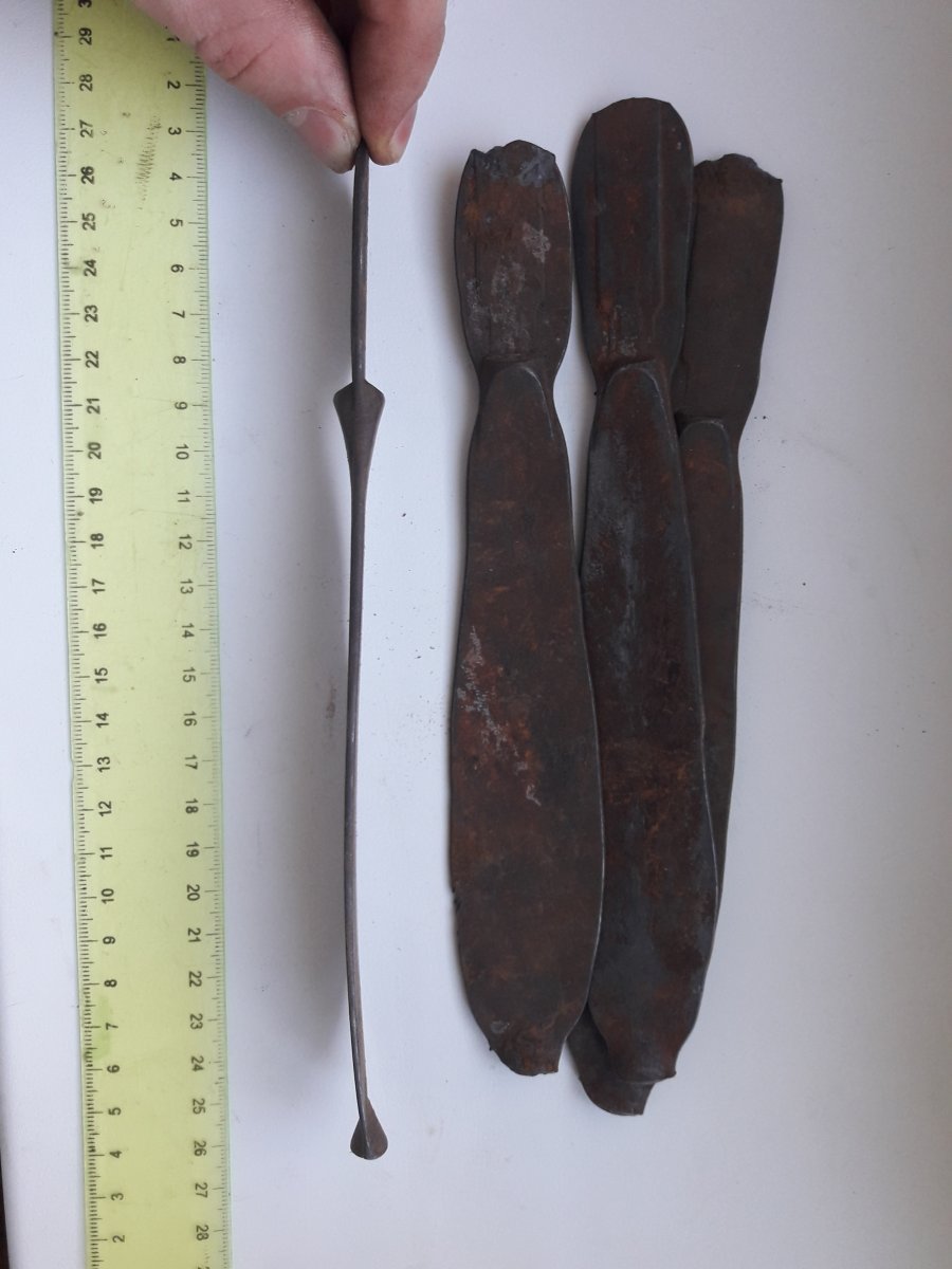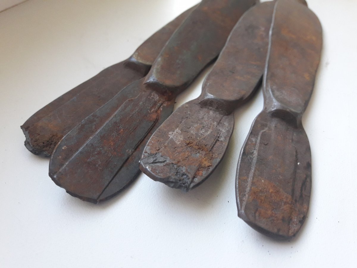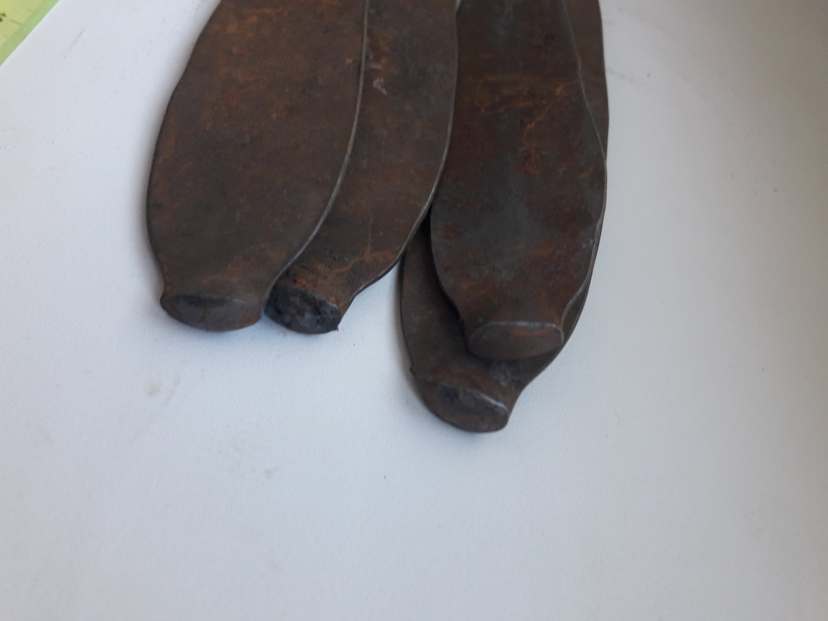 Здравствуйте! Когда то нашел в Голосеевском лесу такие вещи. Около 50 штук, лежали горкой, на глубине 50см. Метал магнитится. Возможно какие то заготовки? Спасибо