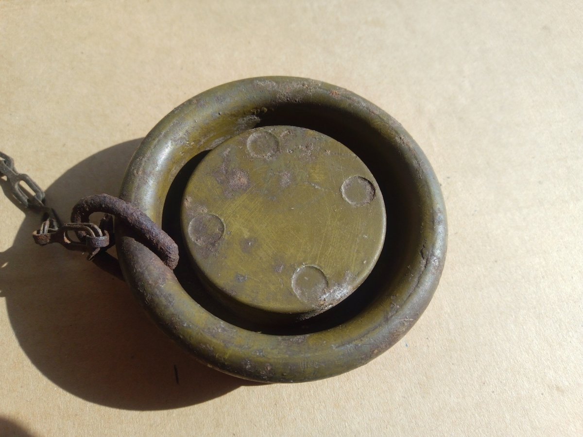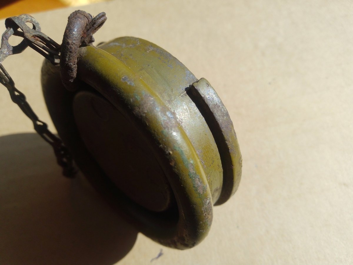 Подскажите пожалуйста с чего крышка,материал алюминий,выкрашена в хаки,цепочка латунь.