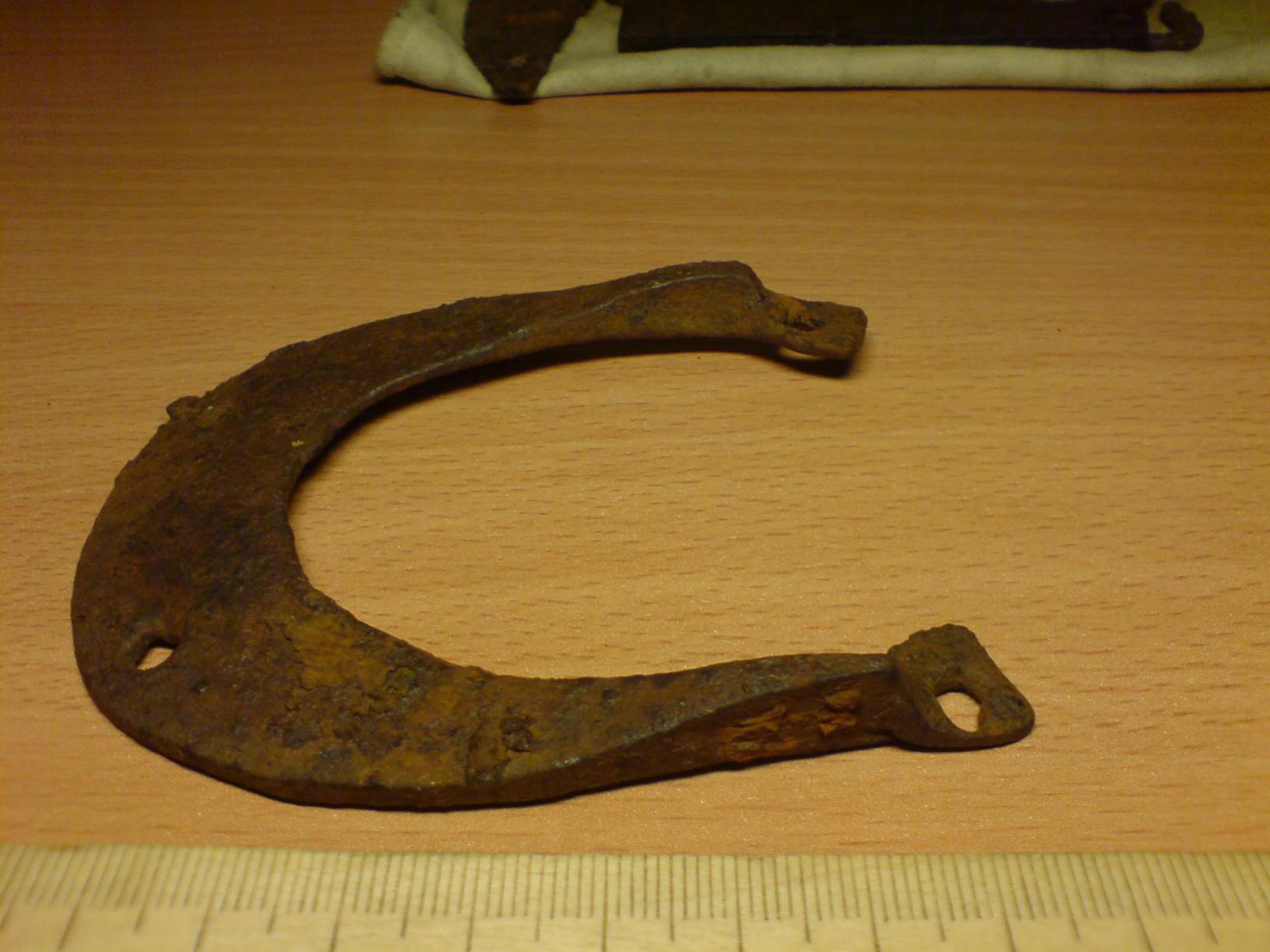Топор по камню колоть.Подкова интересная,но незнаю.Пуговка война морская ,великая отеч.Старые морские с конатиком быле вокруг якаря.Пояльник интересный,если лезвие бронза или латунь, то должен быть 18 века, если метал, то довойны иле после. Был обычьный метал.