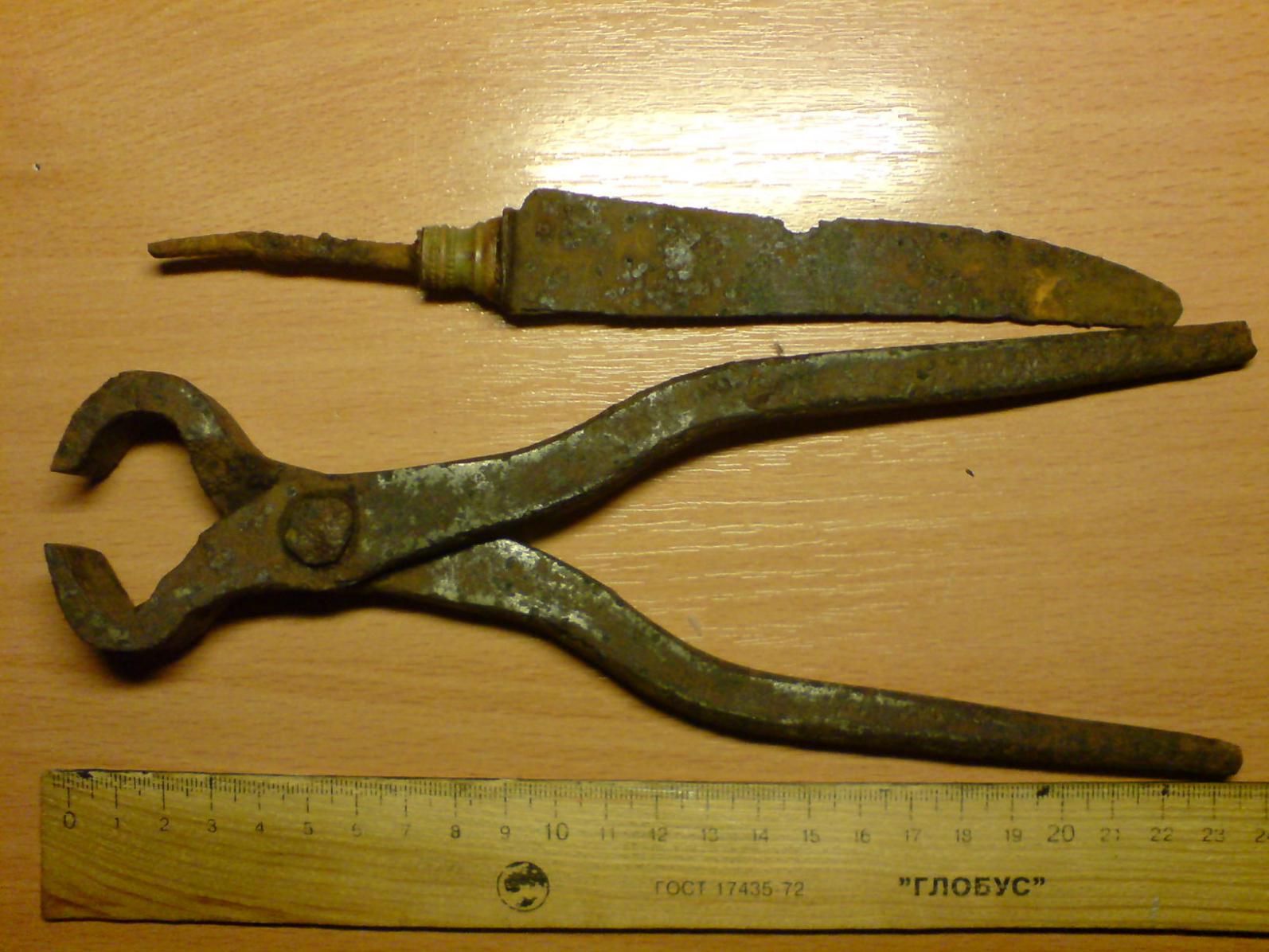 Такие подковы с "лямкой" добавляпи к штатным чтоб одеть "гетры"коню-как правило для защиты от наста и мелкого колючего кустарника.Кстати на осыпях тоже использовали.Кувалда обычная колхозная и на технике,и в каменноломнях тоже использовалась.Паяльник-обычный колхозник-возле прутка его вес выбит,гляньте.