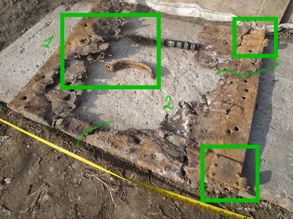Доброго вечора. Викопав такого бачка(40см*20см,вага 20-25кг) ,з чого може бути? Сопутки не було,але раніше там попадало желізяччя по війні.Краска схожа на "німця",але немає червоного грунту.Буду вдячний за будь-яку інформацію.