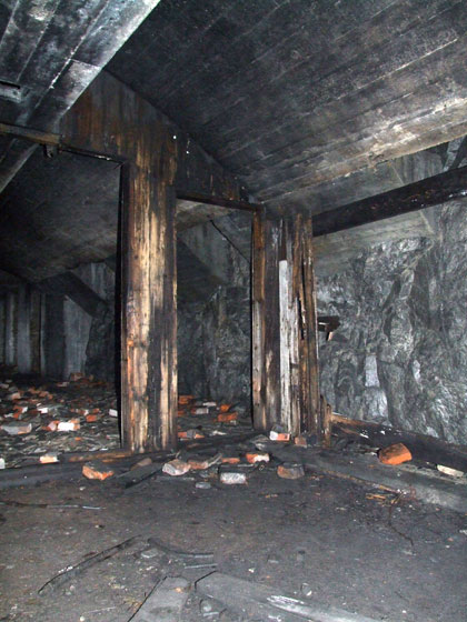 Дополнение к посту 11 от 24. 10. 14. Взяли с товарищем снаряжение и в минувшую субботу съездили осмотрели тоннельную казарму, условно назову её №2. Она меньше по размеру казармы №1, но по прикидкам человек 70 могли в ней расположиться свободно. Сохранность хуже, подорвана шахта воздуховода которая также служила выходом на поверхность.