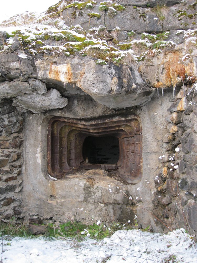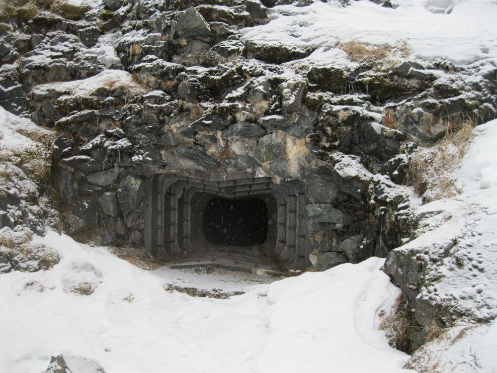 Самое фундаментальное сооружение в "з.К." это тоннельная казарма-убежище рассчитанная на гарнизон 150-200 человек. Вырубленная внутри горы Лысухи поражает своими размерами. Несколько входов-выходом, перепад по высоте между некоторыми достигает 10-12 метров. Некоторые выходы ведут прямо к огневым точкам. Круглая "хреновина" прорезанная в скале, это оголовок вентшахты. На стенках нет снега, значит действует до сих пор.