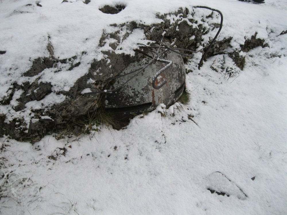 Финский пулеметно-пушечный дот. Для орудия финны использовали советский амбразурный короб Л17. На снимке 6, крышка люка через который стрелок поднимался в пулеметное гнездо.