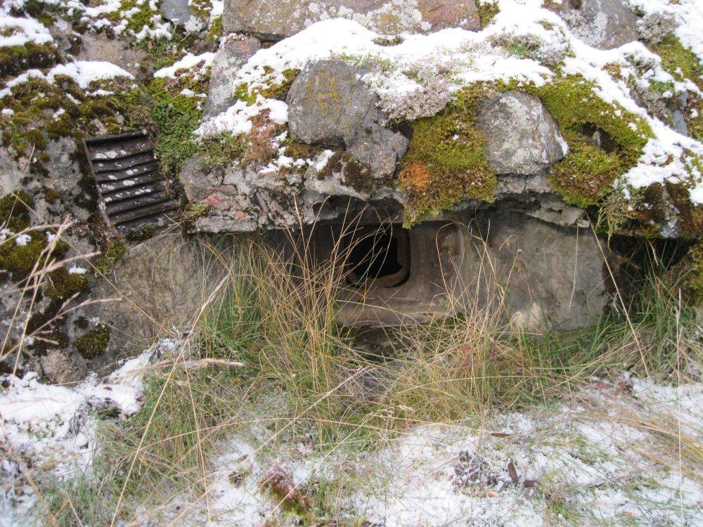 Рыбрека. Наблюдательный пункт на батарее, расположен между вторым и третьим орудием. Один вход, три смотровые амбразуры. Внутренний объём позволяет находиться внутри не более 3-4 человек.