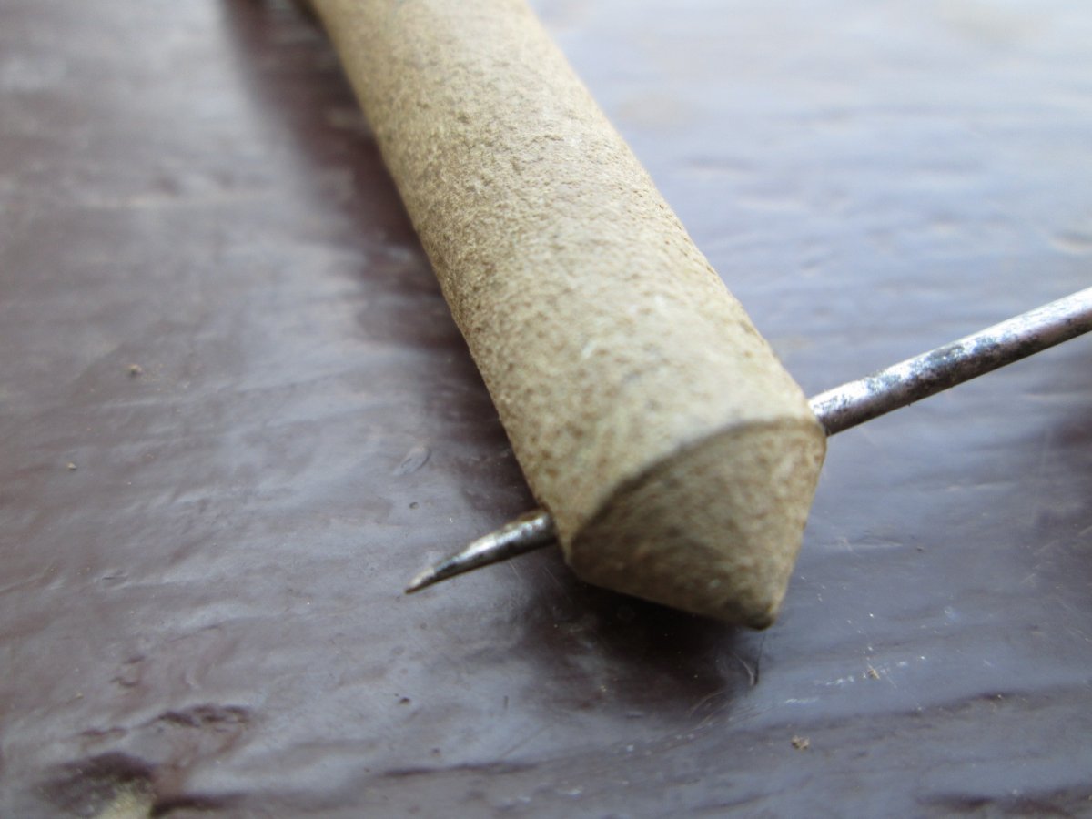 Вот Вам в помощь схемы НЕМЕЦКОГО запала (а у Вас РУССКИЙ запал к РУССКОМУ кугелю). Устройство одинаково. Порох давно стух. Но если сомневаетесь, то просто кипячение в горячей воде, а затем протяните через отверстие (через верхнее отверстие для выхода газов вниз к отверстию для выхода форса пламени) тонкую длинную проволоку.