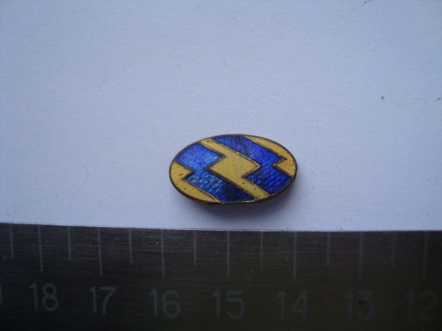 доброго попала на немец позициях такая приблуда похоже на часть запонки эмаль латунь в позолоте на ней руна зиг в зеркальном виде(если серебр) или две голубых подскаите имеет отношение к сс или нет заранеее спасибо
