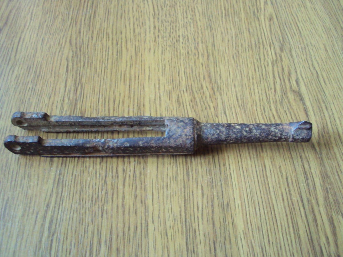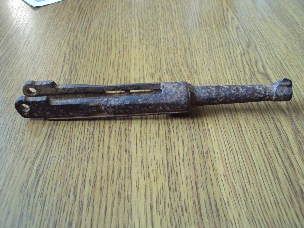 Приветствую. Это камертон от Р.08. Находка не частая, но увы, общее состояние (особенно внутренне) значительно подпорчено коррозией. Не известно, что с общей геометрией (проверить это можно лишь на рамке). Как по мне вещь практически антуражная и пригодна разве что для макета в соответствующем состоянии (на полочку). Так же видится прикипевший пружина спускового рычага (показал на фото), которую не так просто извлечь. По цене - примерно до 500 грн. Ствол я бы залил свинцом.
