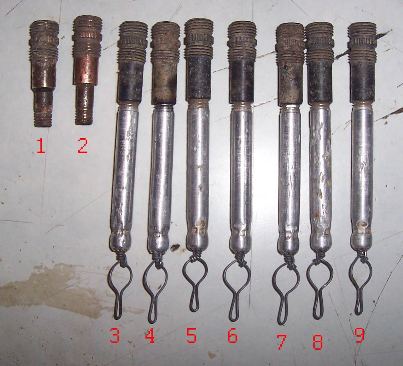 Предлагаются переходники на ручки колотух. Резьбы сфотографированы с худшей стороны. Комплект - 50 грн. Терочные воспламенители. Высверлены - не содержат ничего. Проволочки новодельные вставлены в резиновое уплотнение. Позиции 1, 2, 4, 8 - по 15 грн/шт. Остальные - 20 грн/ шт. Оплата на карту Приватбанка. Пересыл на покупателе. Отправлю Автолюкс, Ночной экспресс, Гюнсел. Резерв в теме, остальное в личке.