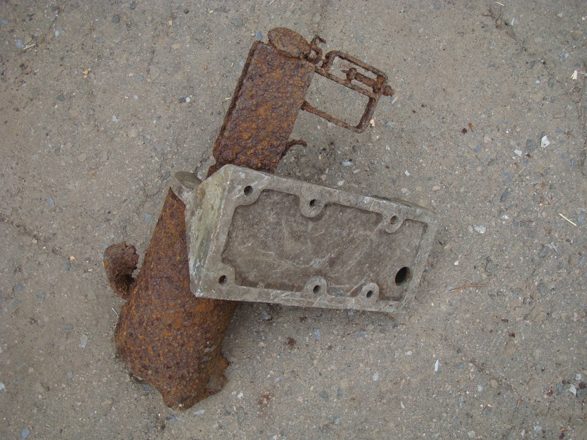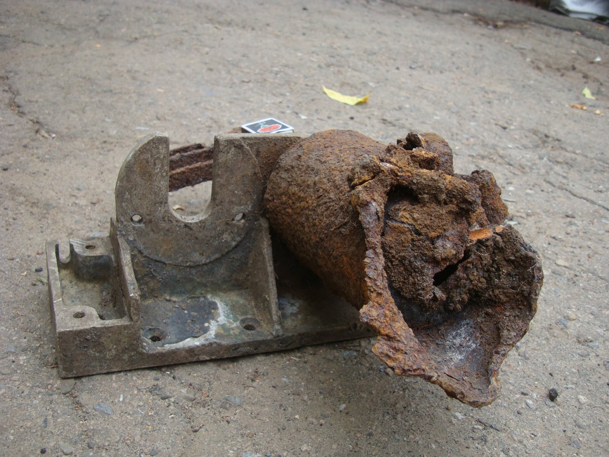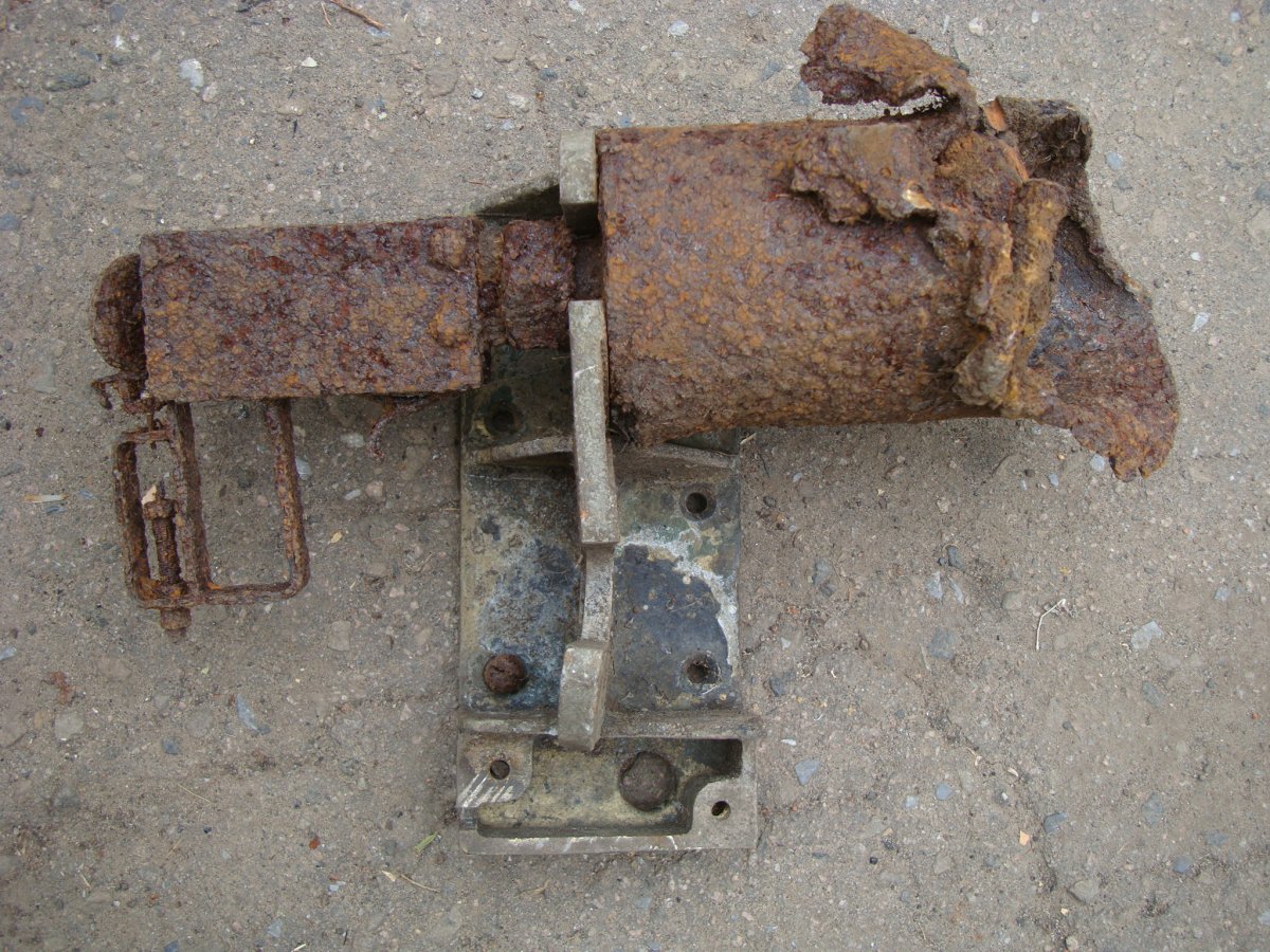 Пластина основа и кроштейн с поврежденной дымовой мортиркой от английского пехотного танка матильда МК-2 1 пластина из поста номер 1, кронштейн мортирок номер 2 пост 2.