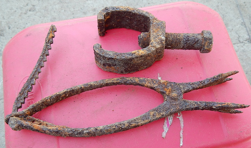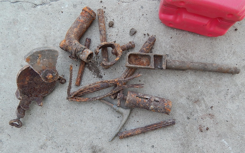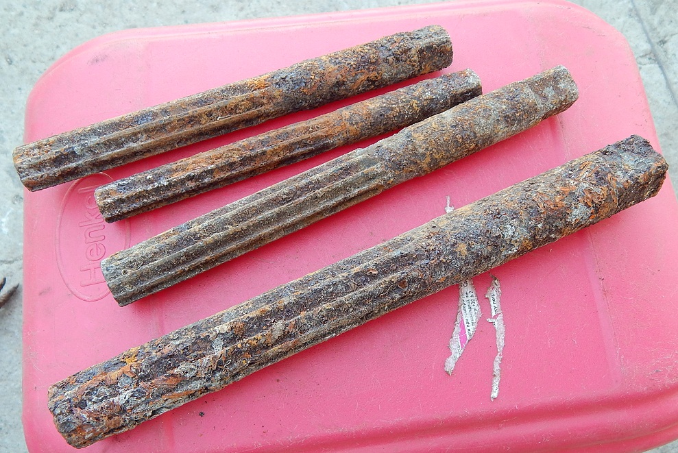 Фото 2—цилиндрические развёртки (слесарный инструмент для калибровки отверстий); фото 8 и 9—остатки ручного наждака.