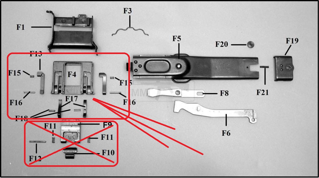 ...ну, то не зовсім "частина кришки" (хоча ЦЯ деталь/механізм знаходится таки під кришкою) це верхня частИна вузла подАчі патронної стрічки (лЄнти) у кулеметі подаЮча планка із зУбом просувАння - нажаль відсутні (знизу - закреслено), але стОпорні та притискАючі пАльці - на місці
