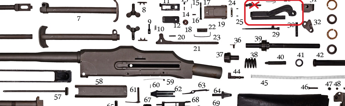 Верно, пулеметный затвор с шатуном от BAR. Для меня остался открытым вопрос - это затвор с более раннего (1918) «американца» или с более позднего (1928) «поляка»? И по какой войне. На фото «россыпей» разобраны американцы. Поляка хорошо разбирают тут Но затворная группа у них с виду выглядит одинаково.