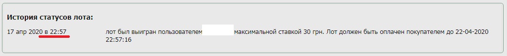Доброго дня, торгувався за лот моя ставка 30 грн була остання судячи з інтерфейсу, після торгів приходить повідомлення що лот проданий іншому користувачу за 30 грн, як це зрозуміти