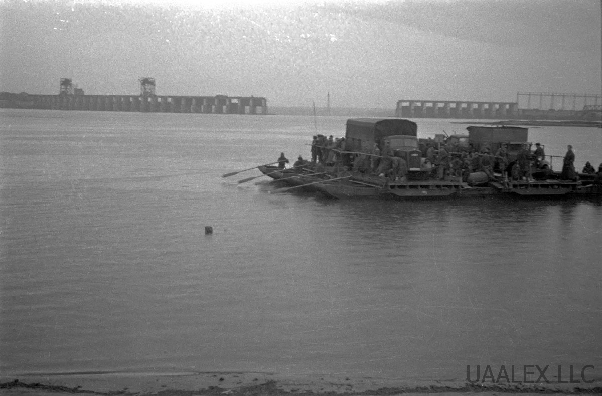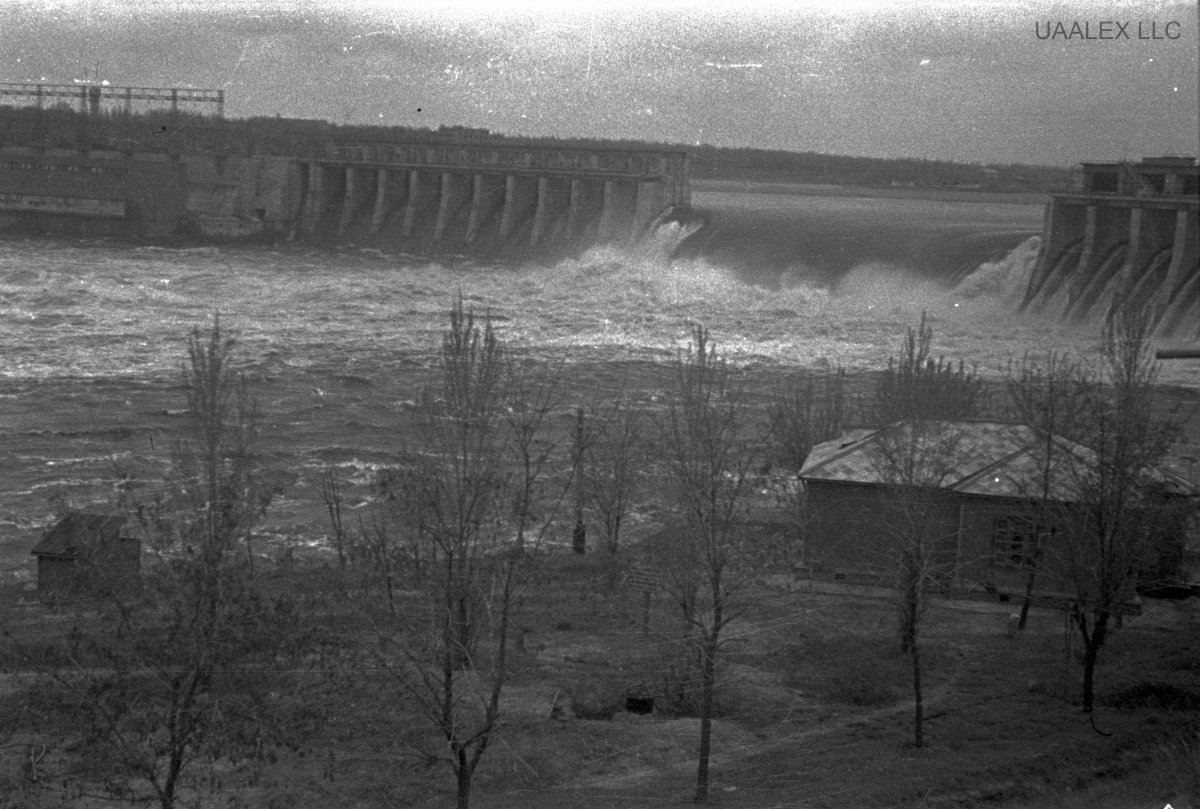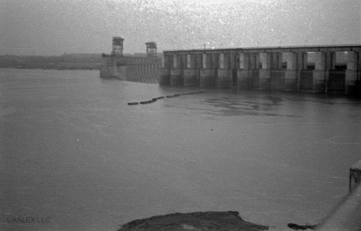 Выдержка о Днепрогэсе, из фотоальбома Вальтера Холлнагелья «Железная дорога на Восточном фронте». Перевод с немецкого. Крупнейшее в мире плотинное сооружение – Днепровская дамба с самой крупной гидроэлектростанцией в г. Запорожье была взорвана в сентябре 1941 года при отступлении советских войск. Созданное плотиной водохранилище тянется от г. Запорожья до г. Днепропетровска, расположенного на расстоянии 65 км от Запорожья, а его вместимость составляет около 1100 млн. кубометров воды. Вследствие разрушения плотинного ограждения и технических сооружений гидроэлектростанции энергоснабжение Донбасса было серьезно нарушено. Ответственность за восстановление участка разрушенной плотины длиной 175 метров была возложена на организацию Todt при участии строительного объединения концерна Siemens, компании Philipp Holzmann AG и еще одной строительной компании. После завершения ремонтно-восстановительных работ 31 декабря 1942 года в январе 1943 года было начато производство электроэнергии при производственной мощности до 42 мегаватт. Протяженность этого монументального сооружения со всеми дамбами составляла 3 километра. Поскольку ввиду развития военных действий расходы на обслуживание ГЭС стали несоизмеримы с достигнутыми показателями энергопотребления, Вермахт под натиском наступающей Красной Армии был вынужден разрушить плотину уже в октябре 1943 года. Правда, перед тем как плотина должна была быть взорвана, Вальтер Холльнагель решился сфотографировать это монументальное сооружение, сохранив для истории документальное подтверждение, увековеченное в будничных, но в то же время атмосферных фотографиях.