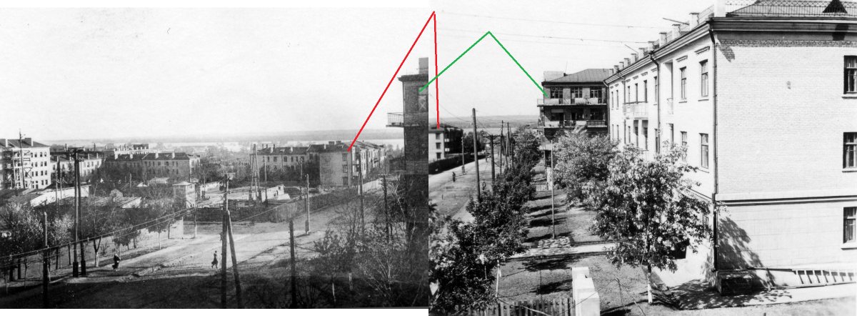 Схоже на те, що фотограф там знаходився з осені 1941 по весну 1943. Відповідно робив фото з вікна чи балкона. Бо серія одна.