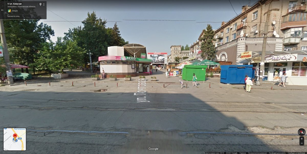 Правильно розумію, що тепер це місце виглядає так? Перекрестя вул.Базарної і Поштової, вбік Соборного проспекту, там праворуч був будинок Медведкова, на його місці сіра 4-ри поверхова сталінка?