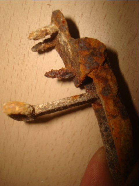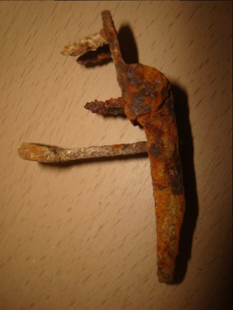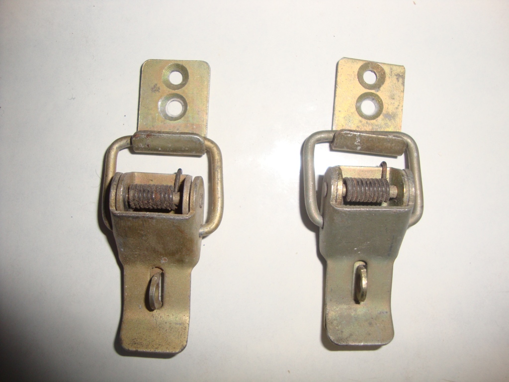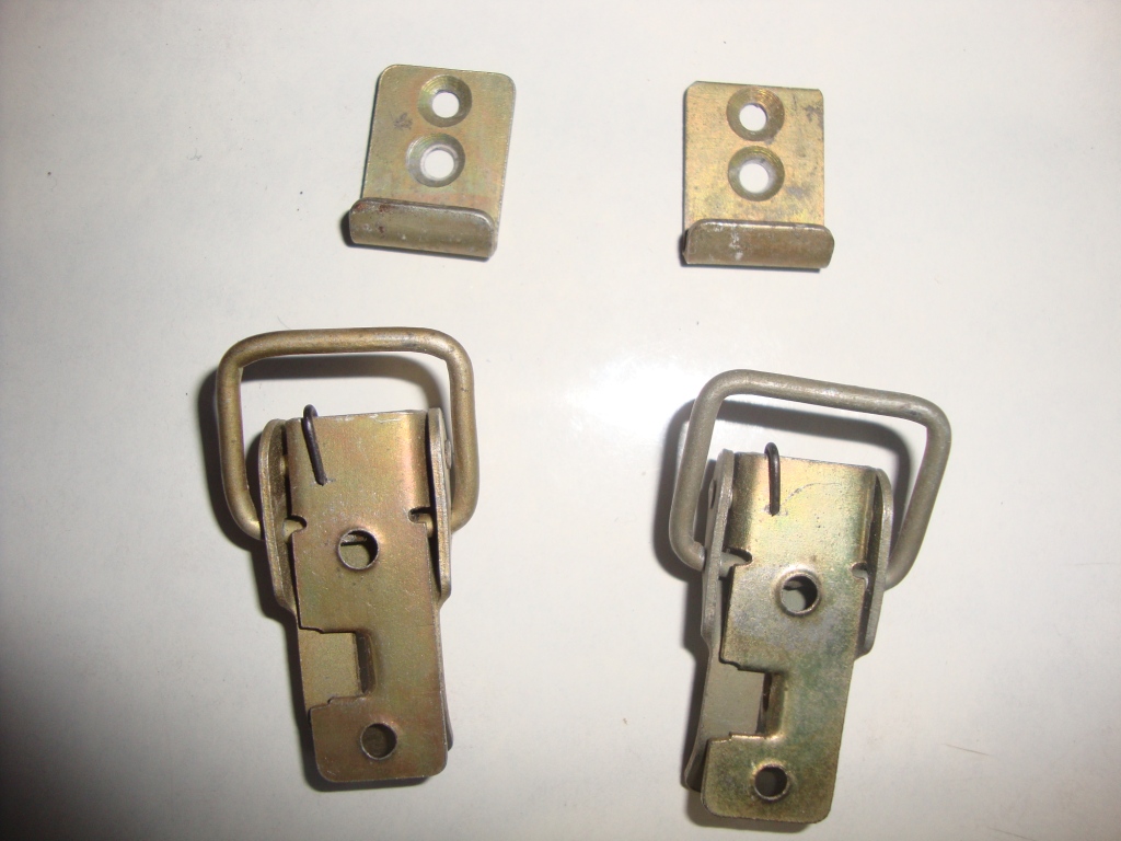 У Вас, по ходу, с металлических ящиков. Есть вот такая, но она явно с деревянного (остатки трех шурупов).