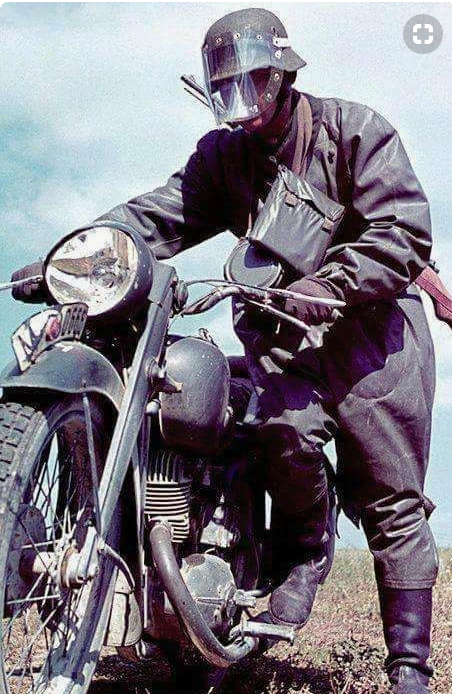 С разными немецкими вещами досталась защитная маска , со слов хозяина, принадлежала немецкому мотоциклисту. Клейм и надписей не найдено. Фото похожего предмета прилагаю.