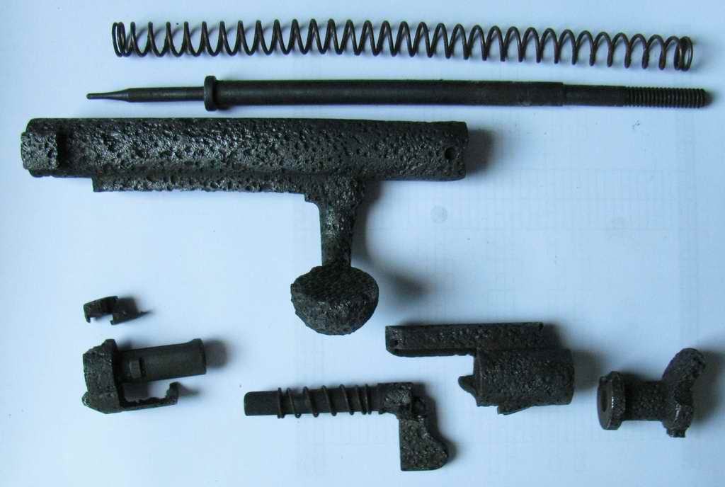 Затвор полностью комплектный и функциональный, нет только пружинки зацепа (плоская 20Х5мм). Просматривается номер, и буквы на предохранителе. Пружина очень тугая, без корозии, ударник тоже чистый. Все остальное по фото думаю видно и понятно. Цена - 300грн. + доставка на покупателе.