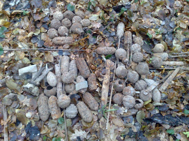 Решуцк Ровенская область Вчера был проездом мимо живописного лесочка в Селе Решуцк в годы войны там распологались арт склады, которые немцы успешно разбомбили, девайсы раскидало в радиусе 700 метров,осколками усыпано все , пищит пипец каждая пядь земли. есть 4 огромных котлована воронки,и все порыто как МЧС так и Зондерами, последние выкапывая воп бросают его прямо тамже, я насчитал 3 здоровых снаряда,2 чуть тоньше 45 бережно положенные на сучки деревьев веток, 2 баняка неопознаные, лежали просто на пеньках и чисто по любопытству заглянул в раскоп над ним стояла конструкция из веток типа пирамидка а в ней авиа бомба длинной с метр толщиной 35-40 см и здоровый стабилизатор,... Господа нех там делать.. там реально найти свой конец...