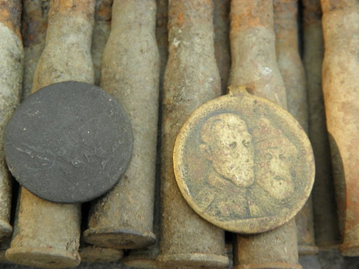 вітаю! трошки не в тему можливо.... Але коли тільки починав копати три роки тому то так само все любив розкладати свої знахідки. Ось моє фото подібне до Вашого (нагадало мої перших три виїзда - ось так я розкладав)