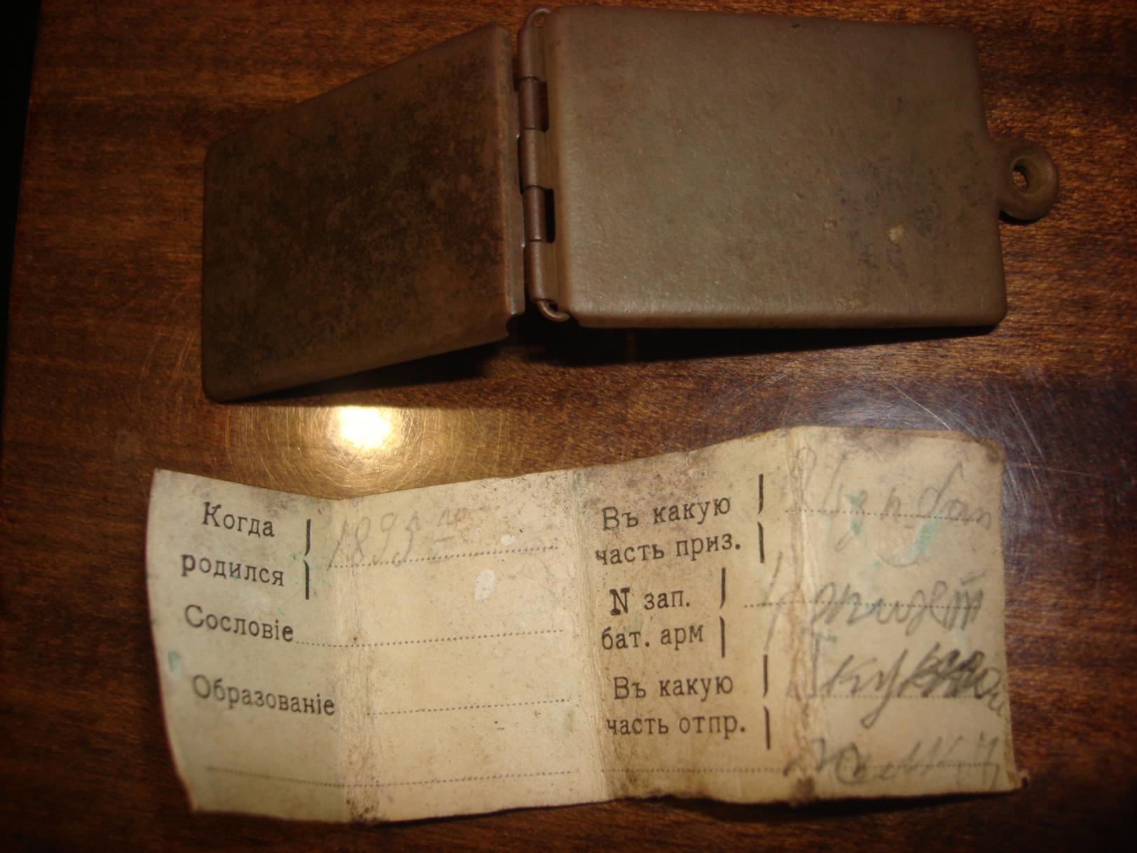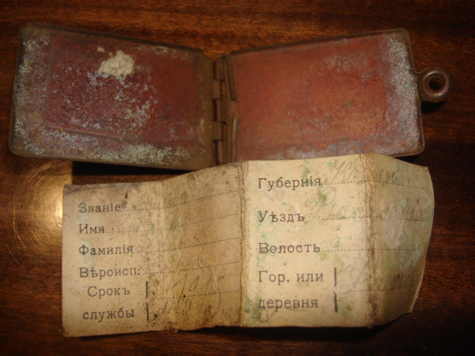 Ще в гарному стані жетон чи правильно -лоза попався, думав автрійський, а як відкрив то вияснилось що РІА. Вдалось прочитати що солдат з 1895 -го року народження, родом з Київської губернії Васильковского уезда м. Фастов