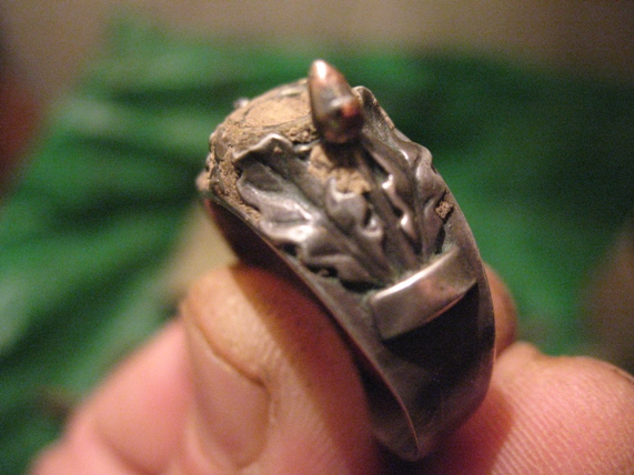 доброго вечора ...ось сьогодня с пройшлися з напарником по битих місцях-австрійська мусорка як завжди підкинула "сюрпрайз"-ось такий перстеньок...один жолудь відламан-камінчик теж..але срібло і старе гріє душу....і може хтось підскаже шо за така цікава залізяка -на кастет схожа?-конина чи від зброї???