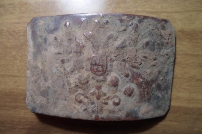 Клевер Там де пряжку знайшов, там і снаряда знайшов і надпис, бажання мало там копати тимбільш засмічено ну просто капец як, купу цвяхів, банок, кришок консервних..