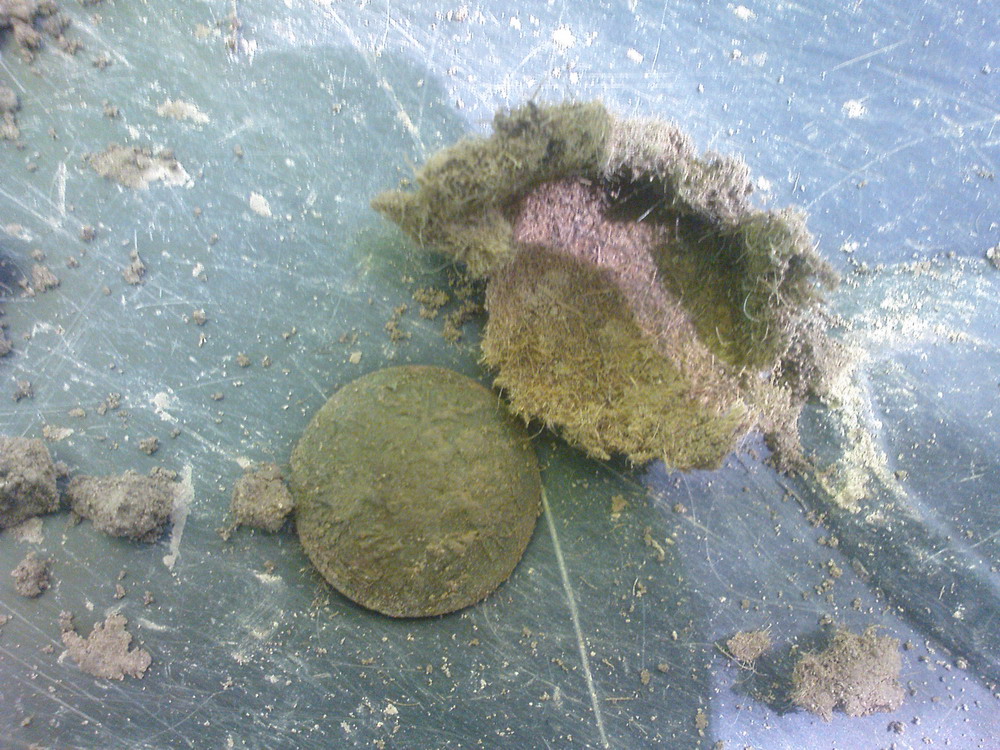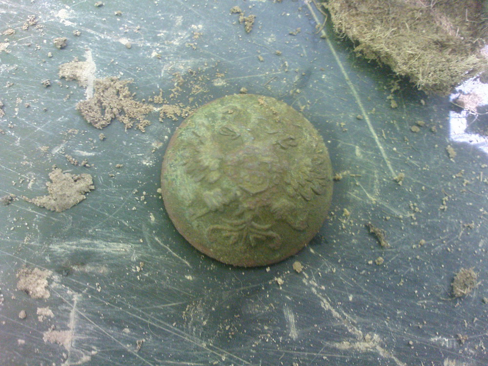 Сьогодні попався гудзик РІА. Здивувало те, що був акуратно обтянутий куском шинелі, вушко обламане, тому напевно і загублений. Знаю, що пряги обшивали сукном, а щоб гудзики, таке зустрічаю вперше. Для чого це робилось? Комусь попадалось таке? Ваші думки і припущення по цьому?