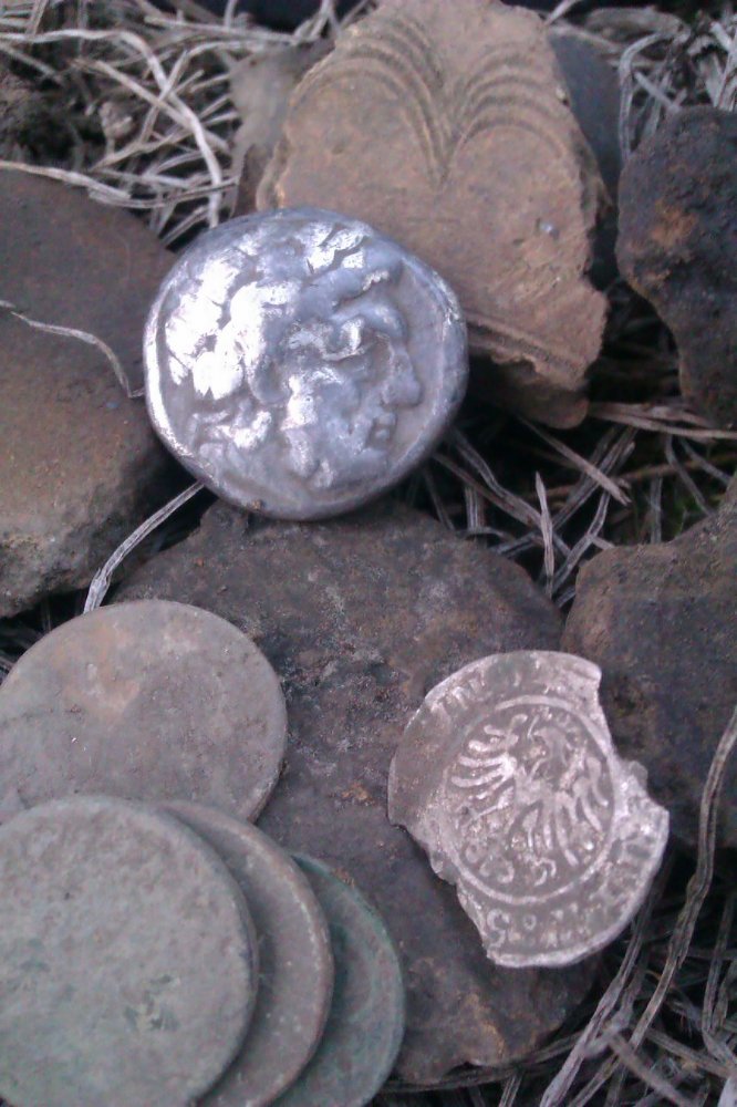 Хоча друзі просвятили що в верху монета це ..Tетрадрахмa Филиппа II. Бати Александра Филиппыча Македонского. Mонетка была популярная и авторитетная!.. Кажись трохи фартануло!)))))
