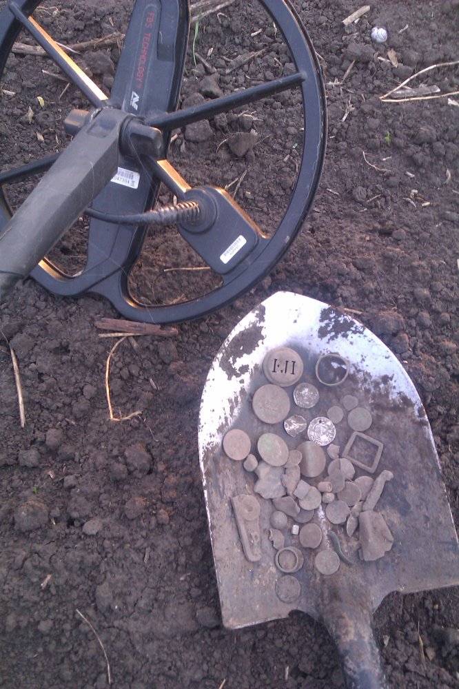знаходите хороше місце і як заєць-петляйте,ходіть по колу,квадрату і копайте все,що дзвенить.головне-не спішіть!це як гриби збирати-один оббіжить ліс і знайде 2 шт,другий на 2 кв.м набє 3 сумки