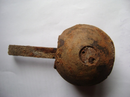 В середині залита парафіном чи якоюсь смолою залізна шрапнель-по контуру ручки.Маю таку- шрапнель не вдалося виколупати а заглушка збоку якщо не латунна то поки не прокислотите то і не видно її буде.