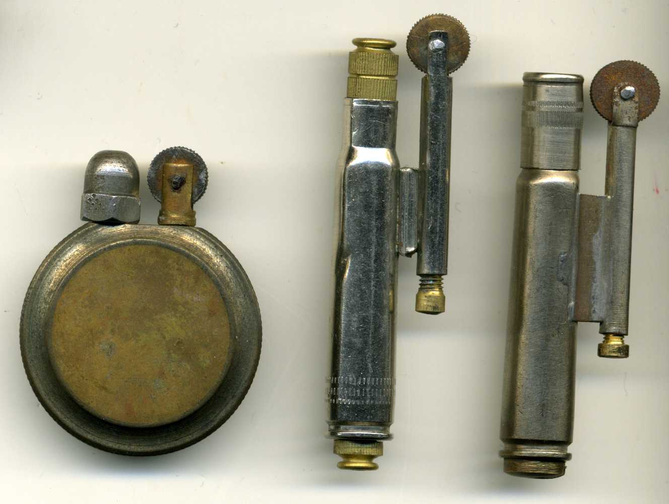 Предложу вот таких три "жиги": 1. Предположительно - австро-венгрия или румыния - 200 грн. 2. Германия, из маузеровской гильзы,1943 г, колпачок на закрутке - 220 грн. 3. Германия, из маузеровской гильзы,1937 г, - 200 грн. Зажигалки в полном рабочем состоянии, к маузеровским - нужно поставить кремнии. Пересыл на покупателе.