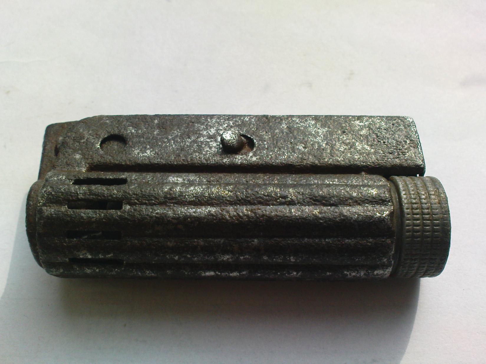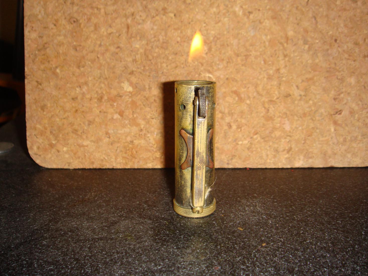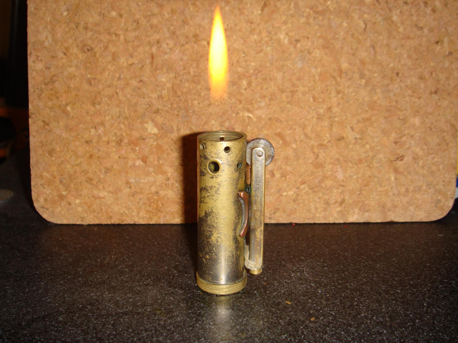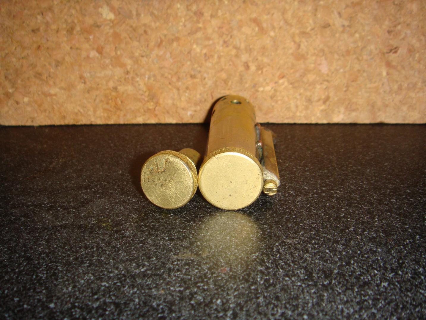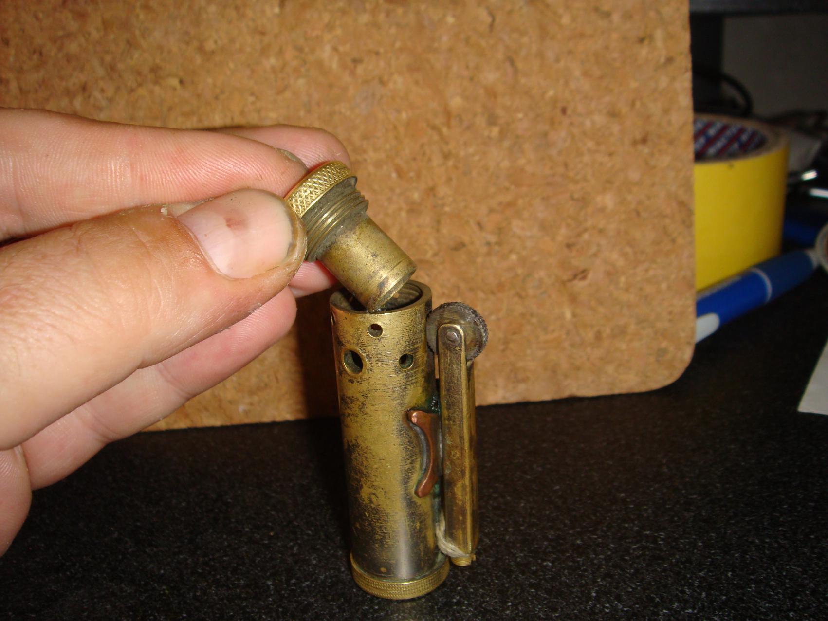 топливный резервуар - нормальный.....резервуар был интересен тем, что при его заправке не нужно было наливать бензин через отверстие а можно было просто вынуть инсерт и обмакнуть его в ведре с бензином... потом просто вставить на место. Это было очень удобно в "полевых условиях". На сайте Винтажлайтерс (ссылка в предыдущем посте комрада Аскот) именно такая и представлена. У меня к сожалению нет фотографий моей в разобранном виде. только клеймо