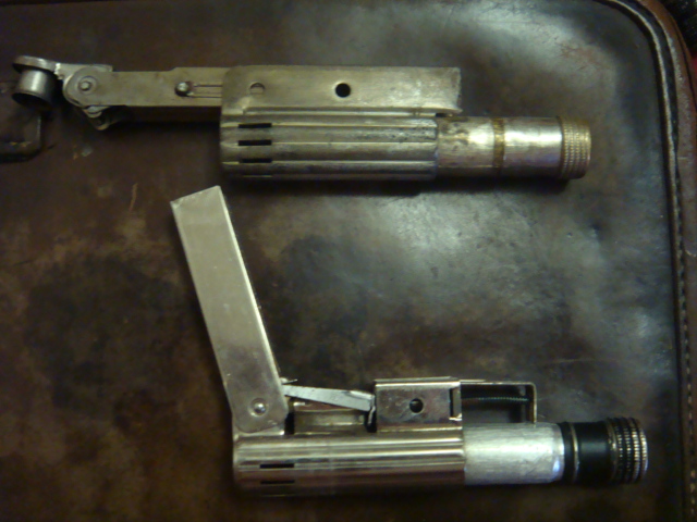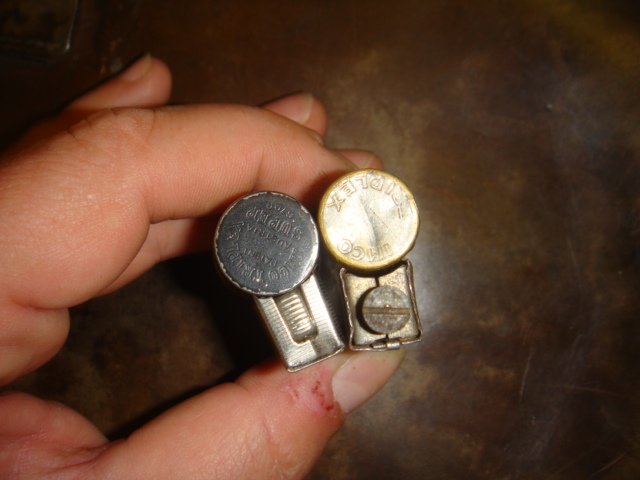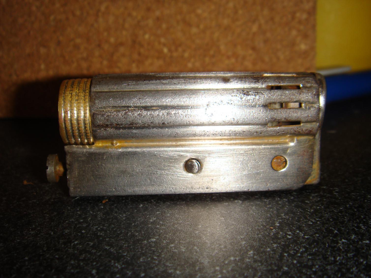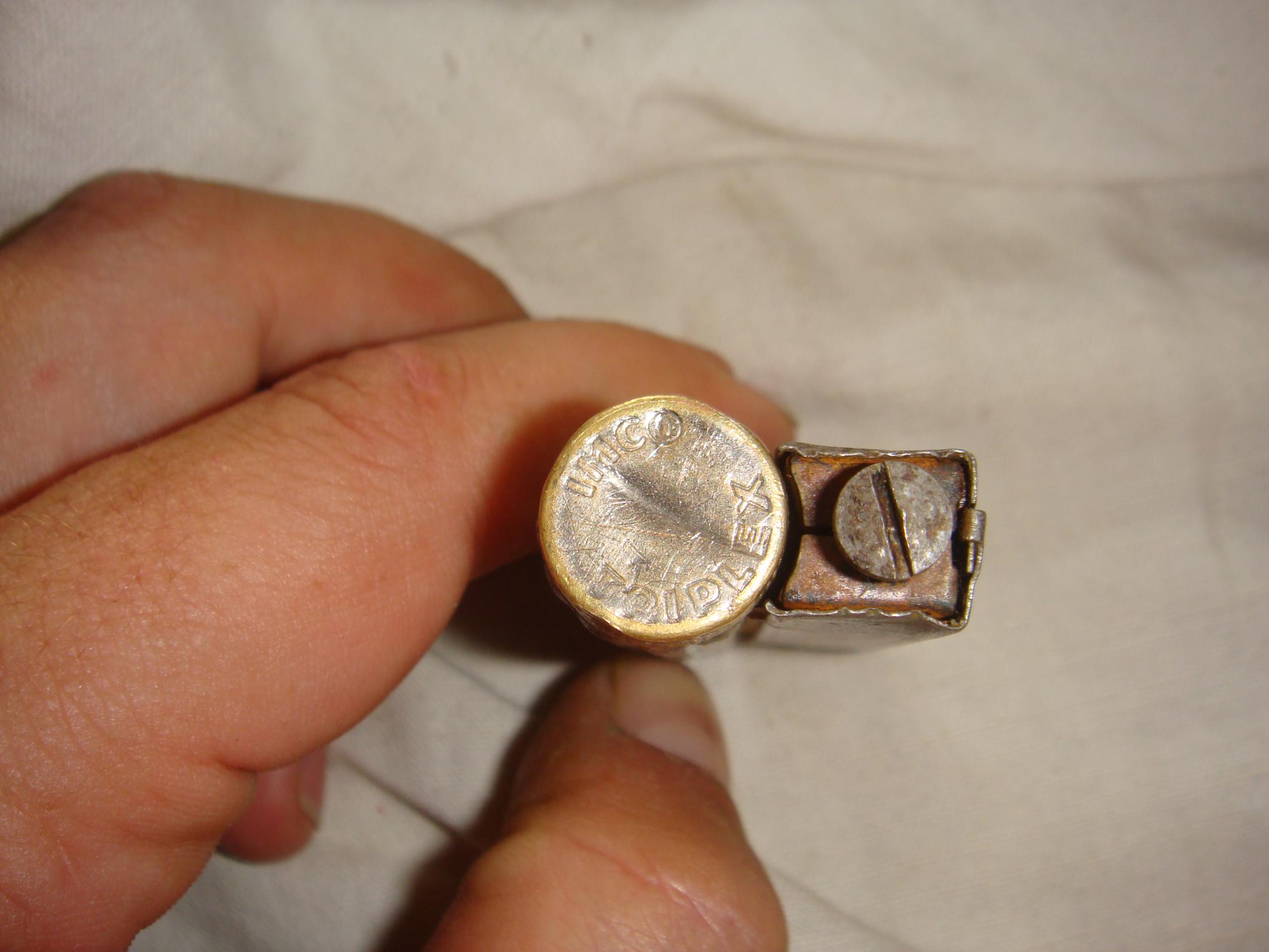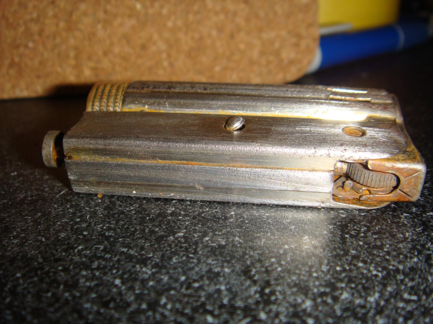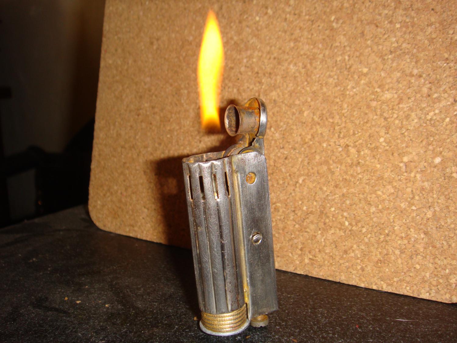 топливный резервуар - нормальный.....резервуар был интересен тем, что при его заправке не нужно было наливать бензин через отверстие а можно было просто вынуть инсерт и обмакнуть его в ведре с бензином... потом просто вставить на место. Это было очень удобно в "полевых условиях". На сайте Винтажлайтерс (ссылка в предыдущем посте комрада Аскот) именно такая и представлена. У меня к сожалению нет фотографий моей в разобранном виде. только клеймо