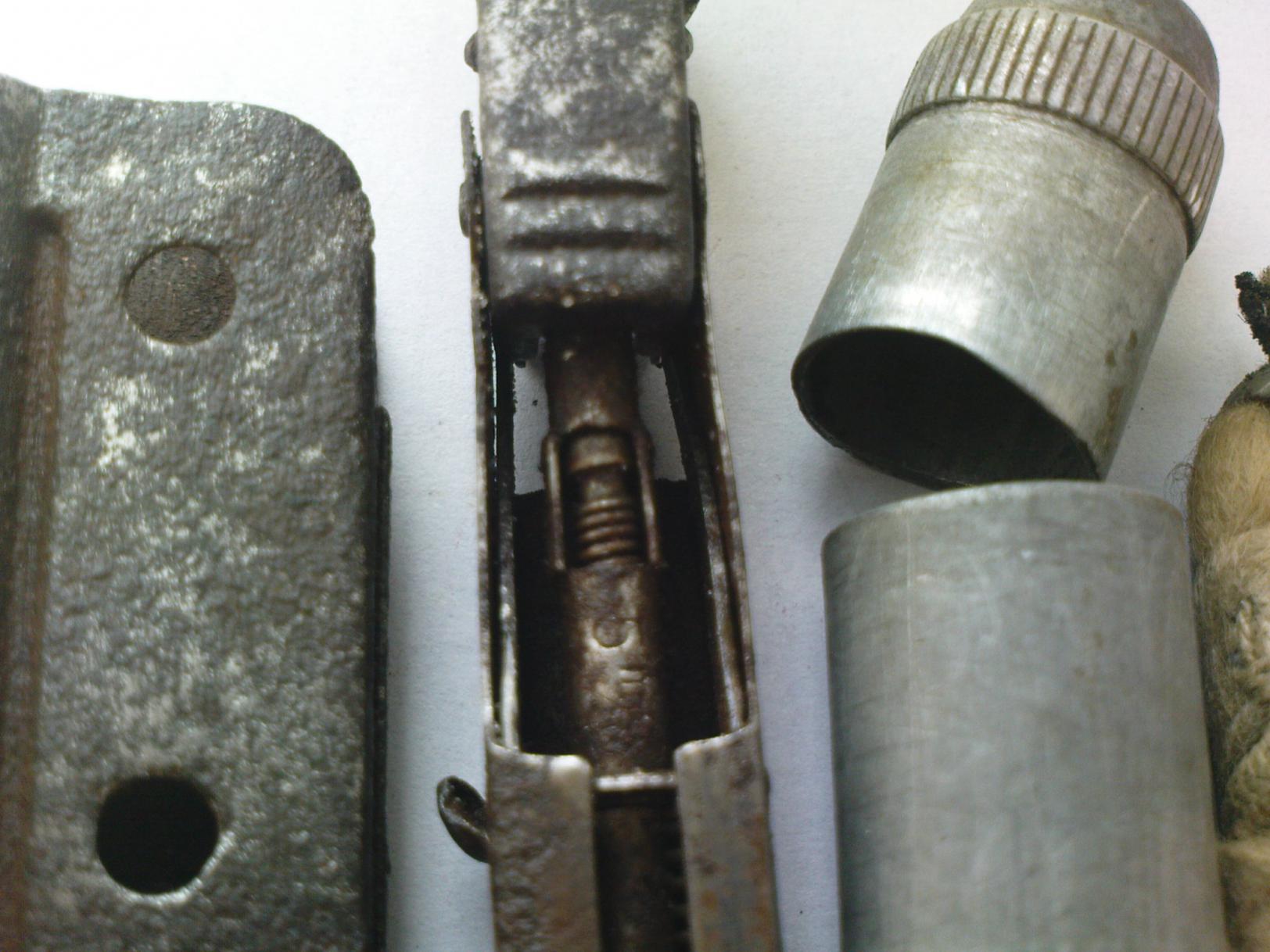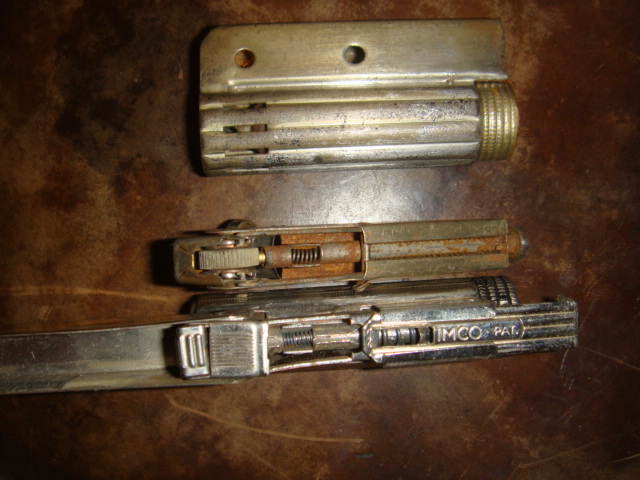 Покажите ИМСО в разборе пожалуйста. Топливный резервуар и клейма внутри на трубке куда кремень пихать. Что то меня в ней смущает если честно,особенно тот винт внизу.Ну и плюс ко всему немного некомплект - нет шторы регулировки плямени.