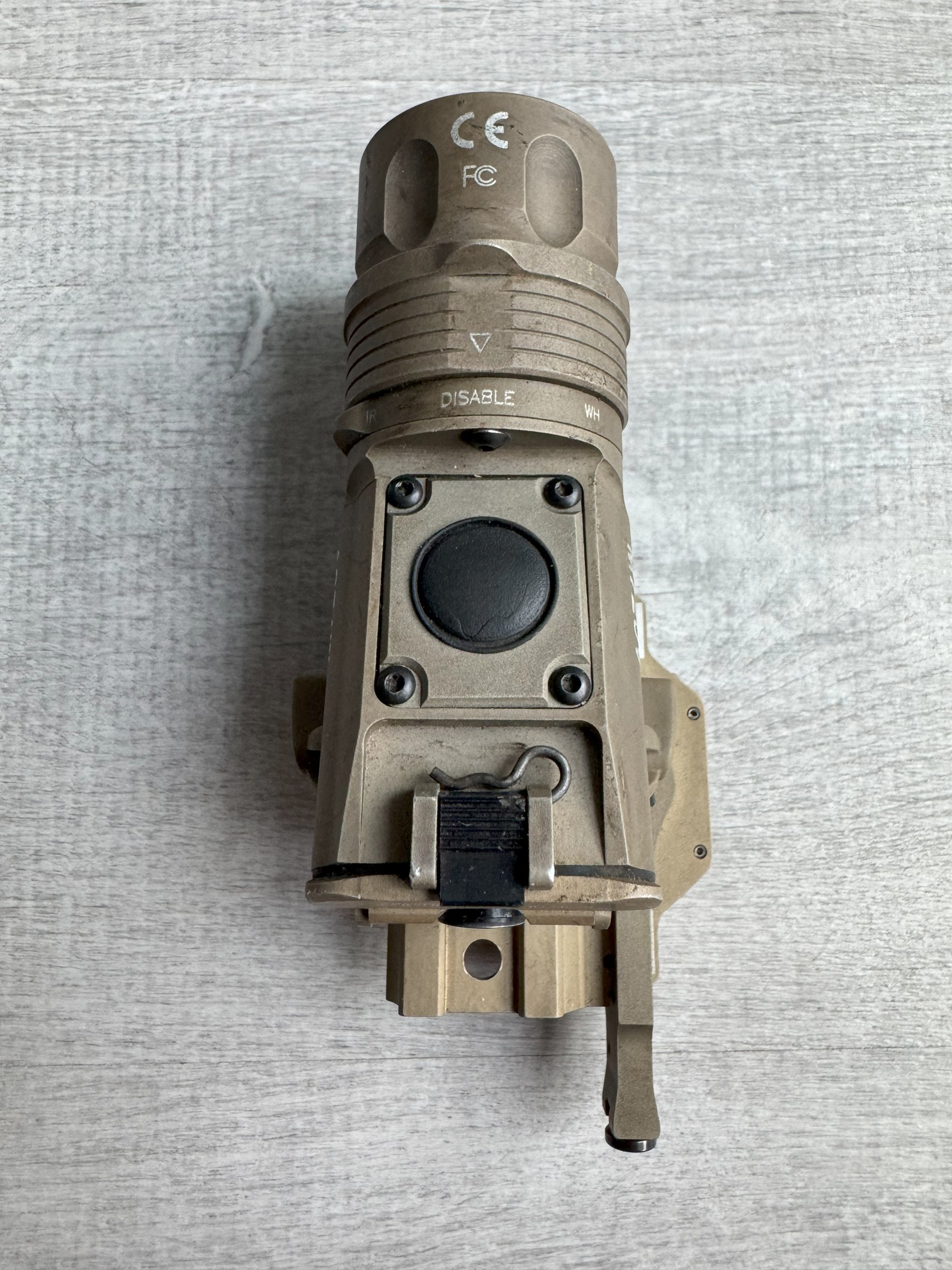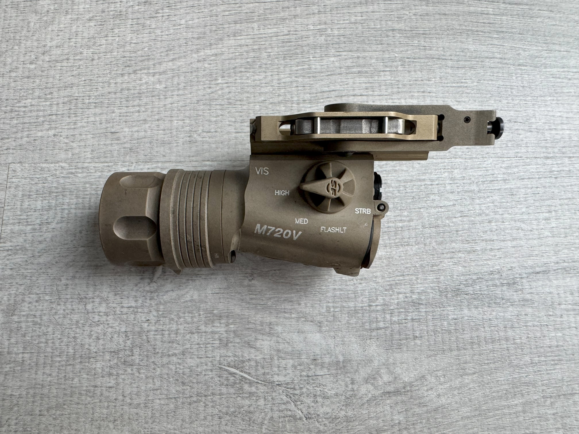 Продам збройовий ліхтар Surefire M720V Weapon Light. Трошки бачив життя, але все працює без нарікань і ушкоджень нема. Має 3 режими роботи для білого світла (150, 75, 15 Lm) та інфрачервоного світла (240, 100, 6 mW) для роботи разом з ПНБ. Сильна сторона цього ліхтаря це IR світло, великої потужності в 240mW вистачає для освітлення великого простору. Ціна 300 доларів, аргументований торг має місце.